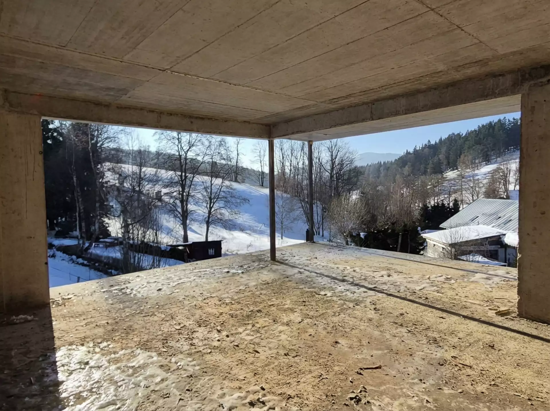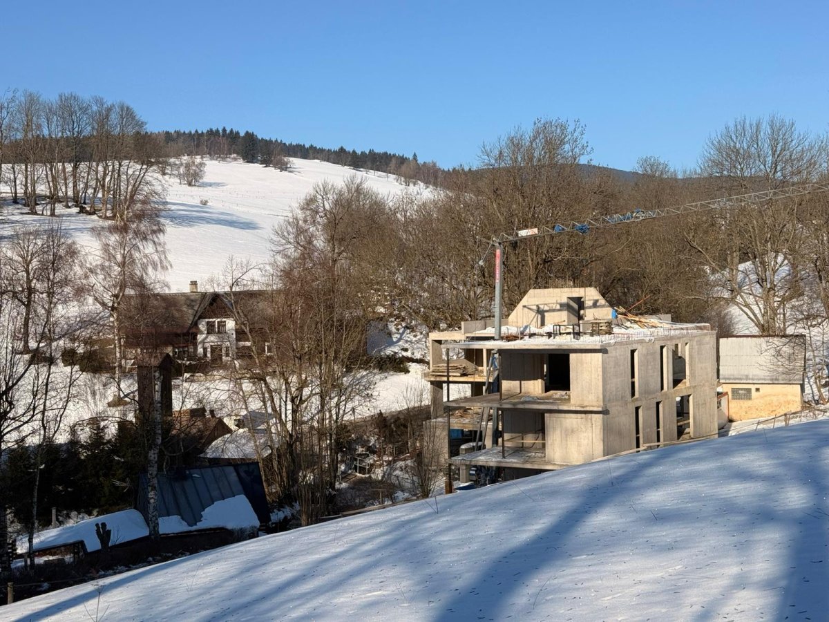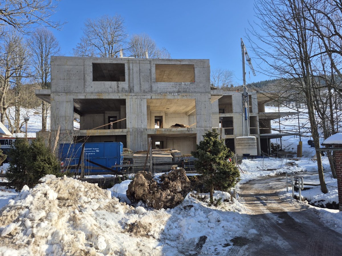 Výstavba je dočasně pozastavena z důvodu zimní přestávky. Stavba střechy bude zahájena podle přízně počasí. Již nyní je zřejmé, že budoucí apartmány nabídnou krásné výhledy do okolí.
