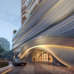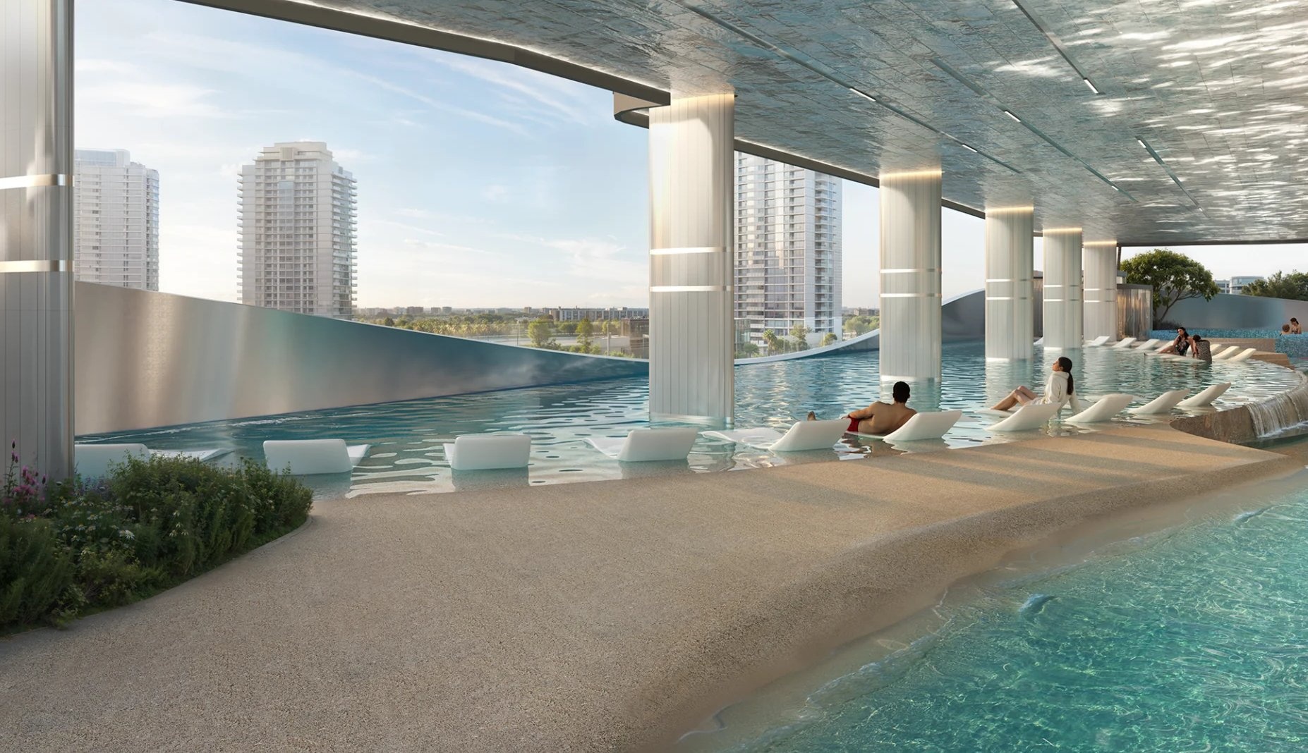 The building's architecture is dynamic yet elegant, with subtle curves inspired by the movement of water and the rhythm of time. The residence is designed as a harmonious whole, where modern design is combined with smart technologies and an emphasis on comfort and long-term value. Each unit has a private balcony and private pool, bringing a unique resort-style living experience to the urban setting.