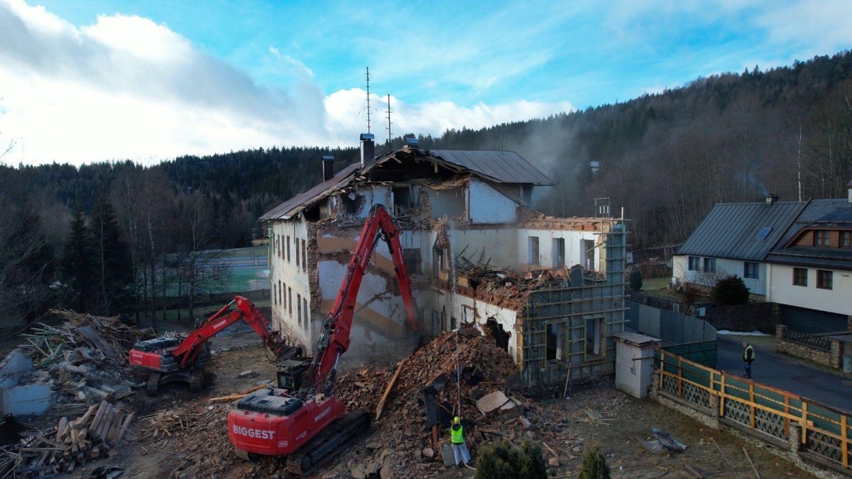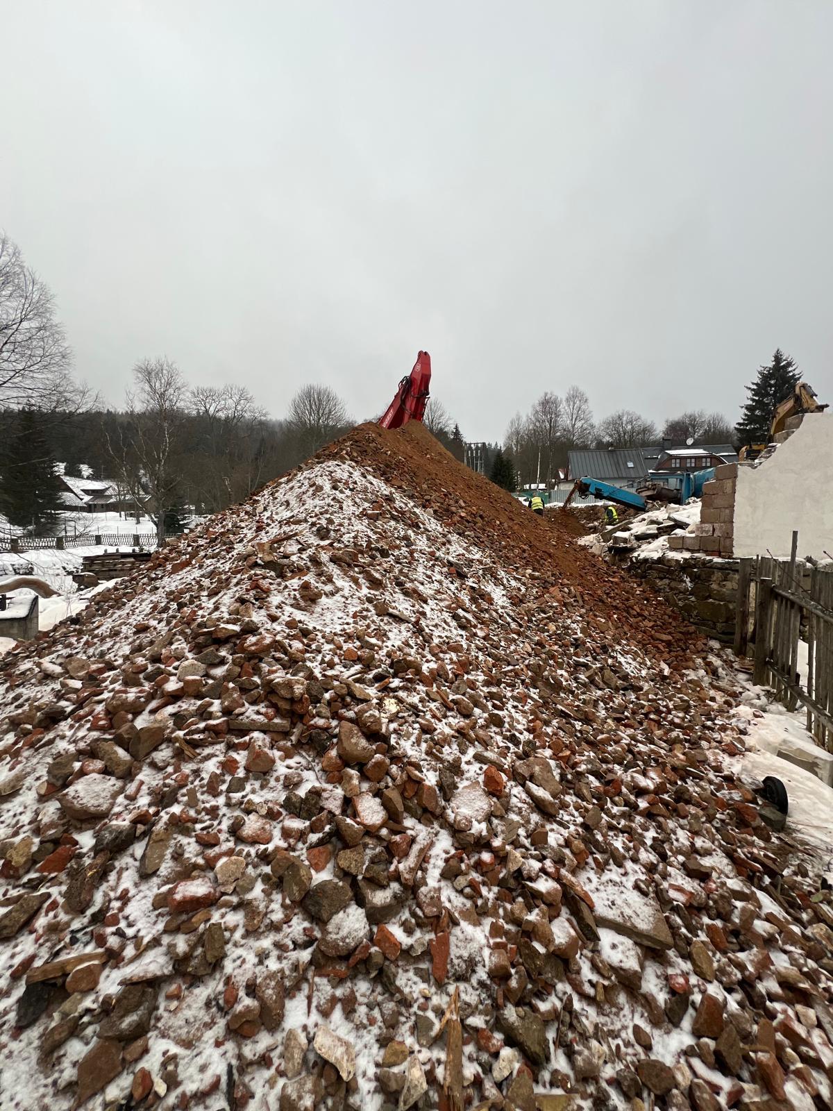The original structure has already been removed, the remaining building material is currently being processed and preparations for excavation of the pit are underway.