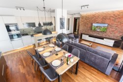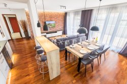 We offer for rent a modern furnished 4+kt apartment with a living area of 116 sqm, terrace and a balcony. Located in a well-kept apartment complex with its own vineyard, accessible gazebo and reception. The property offers views of Vyšehrad and the historic wall separating the complex from the noise of the city.