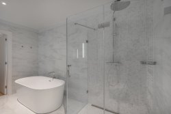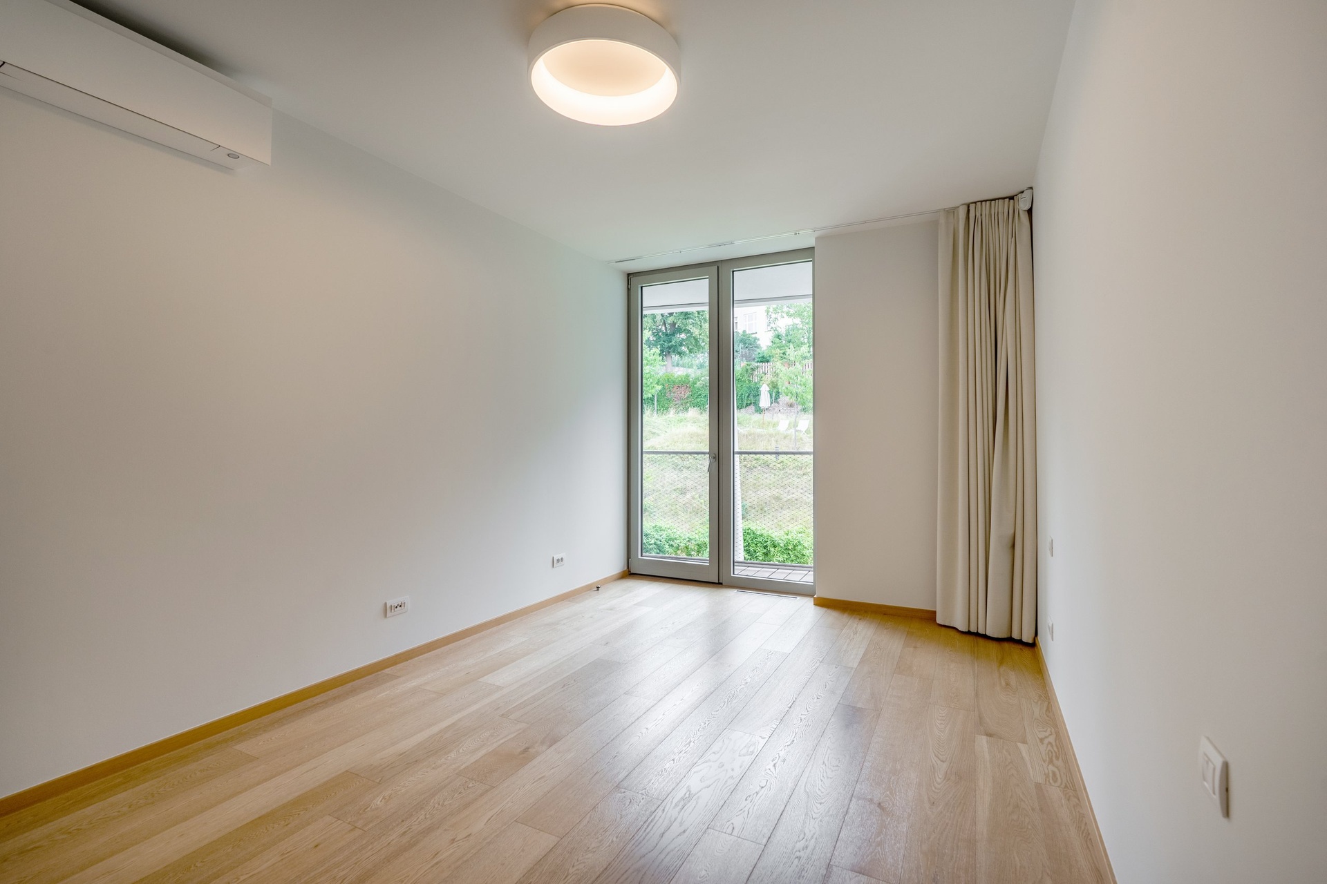 High-quality materials were used in the project. Solid wood floors. Large-format tiles in the bathrooms. Underfloor heating throughout the apartment. French windows with sound insulation ensuring peace and quiet as well as ample lighting. Each room has its own entrance to the terrace.