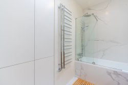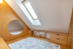 We offer for long-term rent an exceptional 4+kk apartment with a floor area of 120 m², located on the top floor of a modern extension of a brick apartment building with an elevator in the popular Prague district of Dejvice. The apartment also has a spacious 18 m² terrace facing a quiet courtyard, which ensures complete privacy and a pleasant outdoor space.