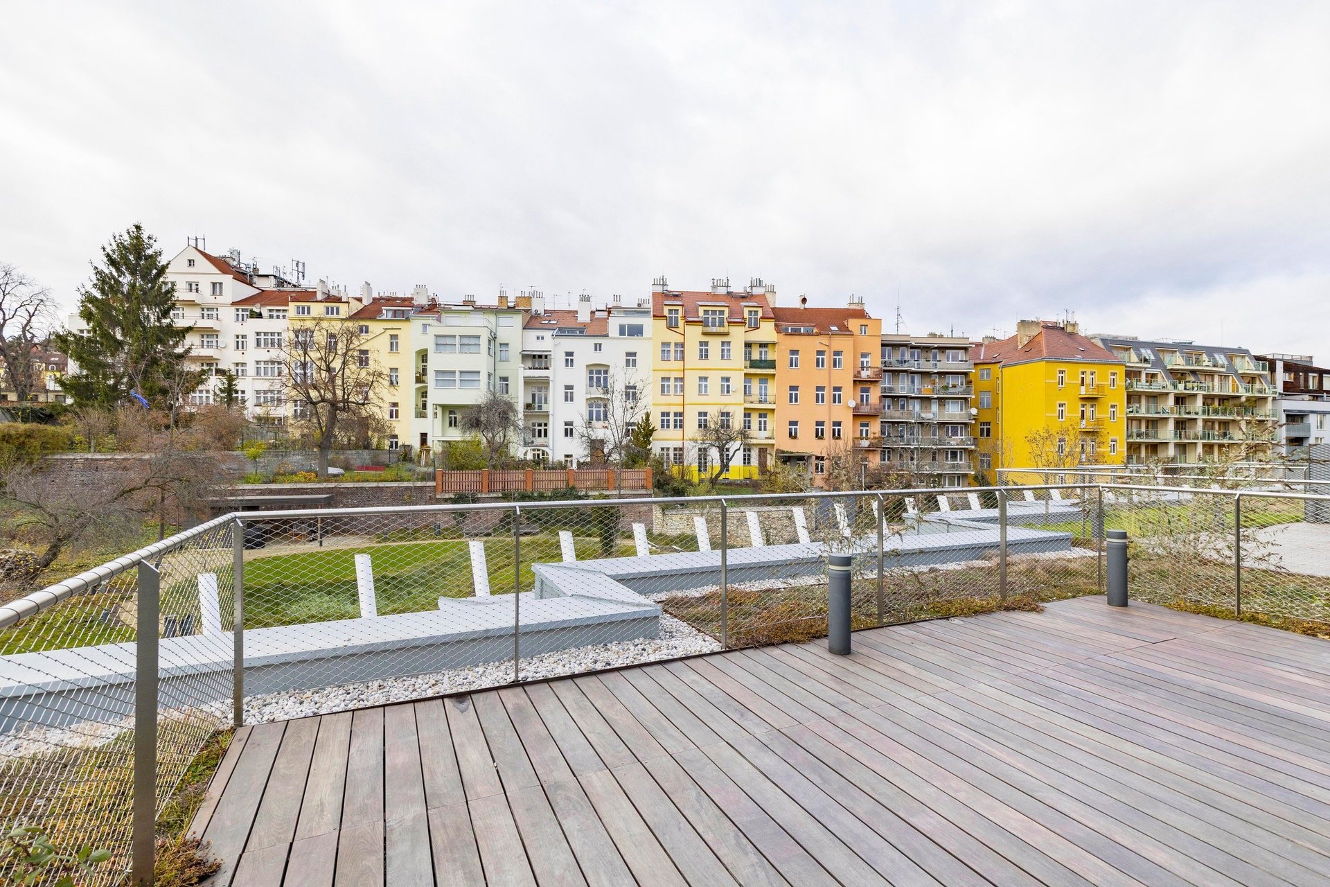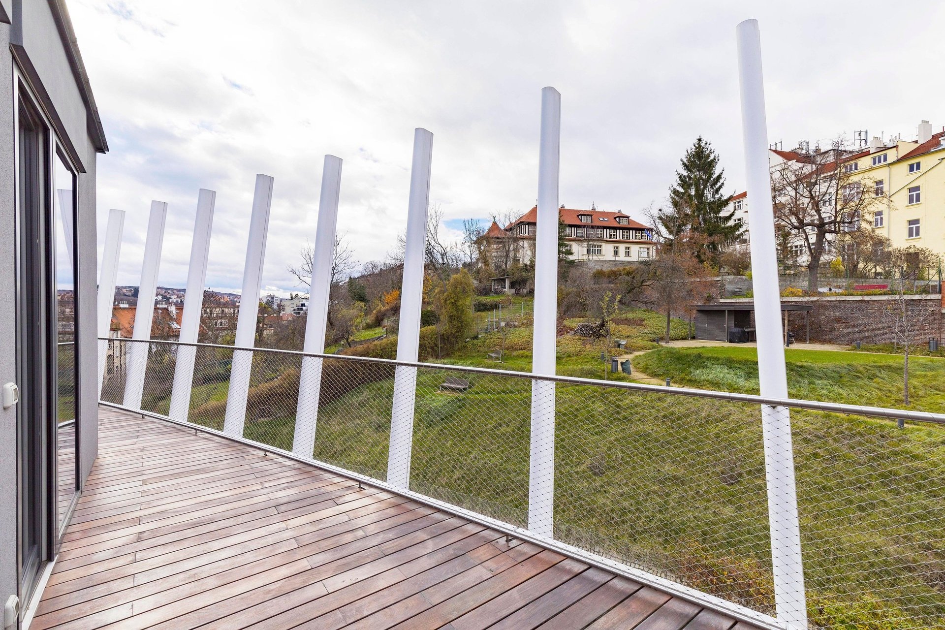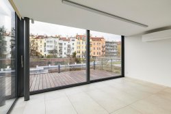 We offer for rent a spacious 4+kk duplex penthouse with a usable area of 212 sqm with three terraces on the 6th and 7th floors of a new residential project with an elevator and a number of above-standard additional services such as a reception, swimming pool, wellness center, and a large shared garden in an enclosed courtyard. The apartment comes with a cellar, and a parking space in the underground garage can be rented for an additional fee.