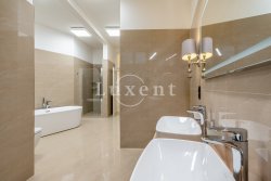 The apartment has quality laminate floating flooring and tiles, built-in wardrobes in the entrance hall. Windows around the perimeter of the apartment provide an excessive amount of daylight. The apartment is rented partially furnished including TV with Bang & Olufsen audio set and all kitchen appliances.