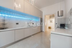 The layout includes a representative entrance hall, spacious living room, kitchen superbly equipped with all Siemens appliances, including a wine cellar and lava grill. There is also a dining room, three non-partitioned bedrooms, bathroom with bath, shower, double sink and toilet, separate dressing room and guest toilet.