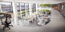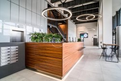 ZET.Office offers unique loft offices for companies. Minimum rentable area 700 m². Unique loft units with an industrial atmosphere combine industrial history with the most modern requirements of the working environment. The building has retained its industrial character. It offers six floors of unconventionally designed offices equipped with the latest technology. Meeting rooms are fully equipped. The floors can be divided into up to four separate rental units, each with its own entrance, bathroom and kitchenette. The building also has a communal rooftop atrium with a terrace offering unrivalled views of the city, a café, restaurant, gym and outdoor meeting space. In front of the building there is a relaxation area (volleyball, jogging track, barbecue).