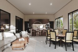 The standard design of the houses comes in three variants - one, two or three bedrooms. The communal living area of the interior is separated from the bedrooms and bathroom by a practical entrance hall. The roofs can be supplemented with solar panels for even greater self-sufficiency. Thanks to these advantages, your investment will also have a better return on investment. The attractive and functional minimalist design of the houses is complemented by extensive private grounds with spring water, mature trees and a fertile garden where you can harvest your own tropical fruits. In addition to the pleasant atmosphere of the design house, you will also get your own unique green privacy.