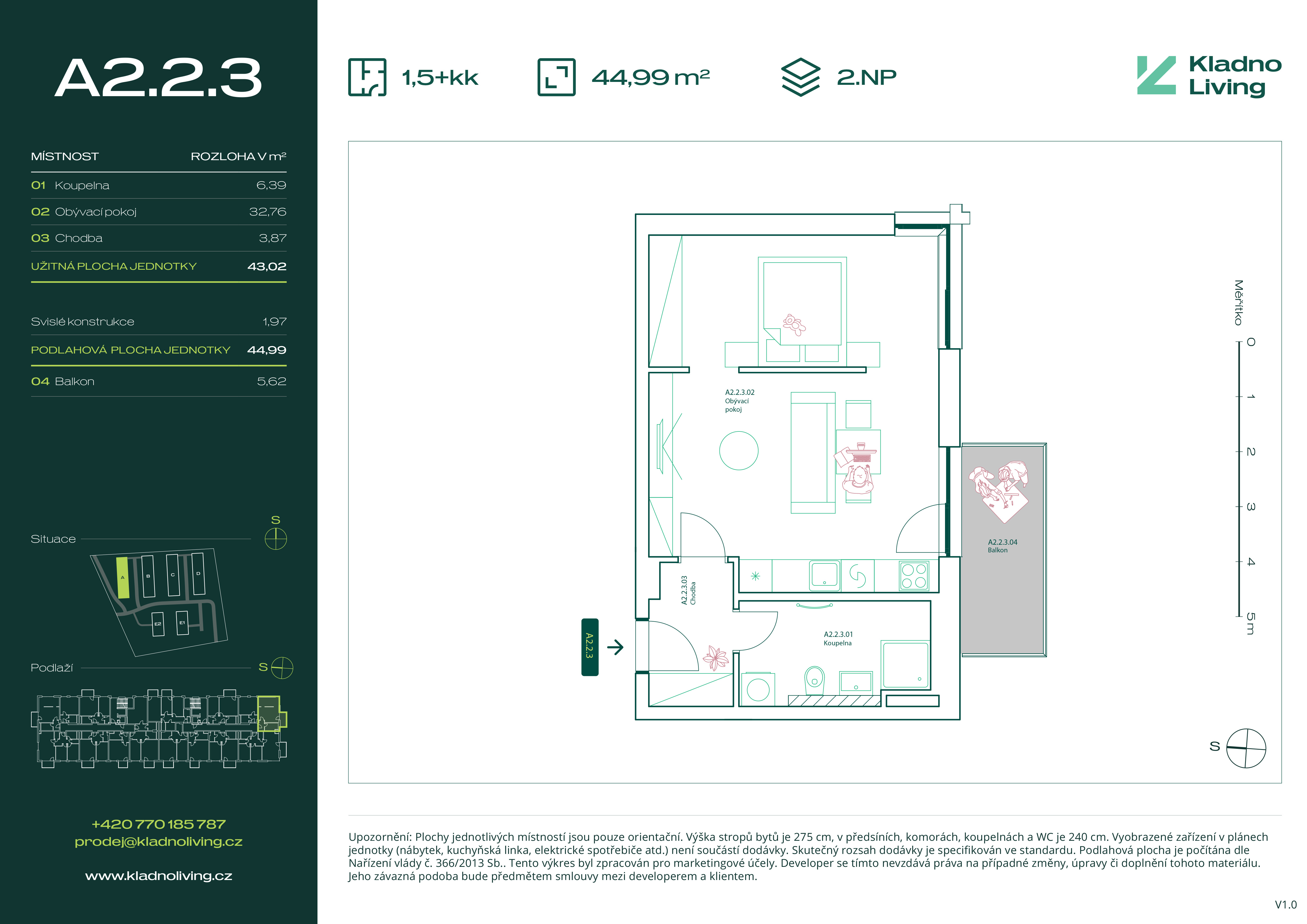 | KL-A223 | 1 + kitchenette | 1st floor | 43 m2 | 45 m2 | No / 6 m2 / No | No | Reserved | Detail |