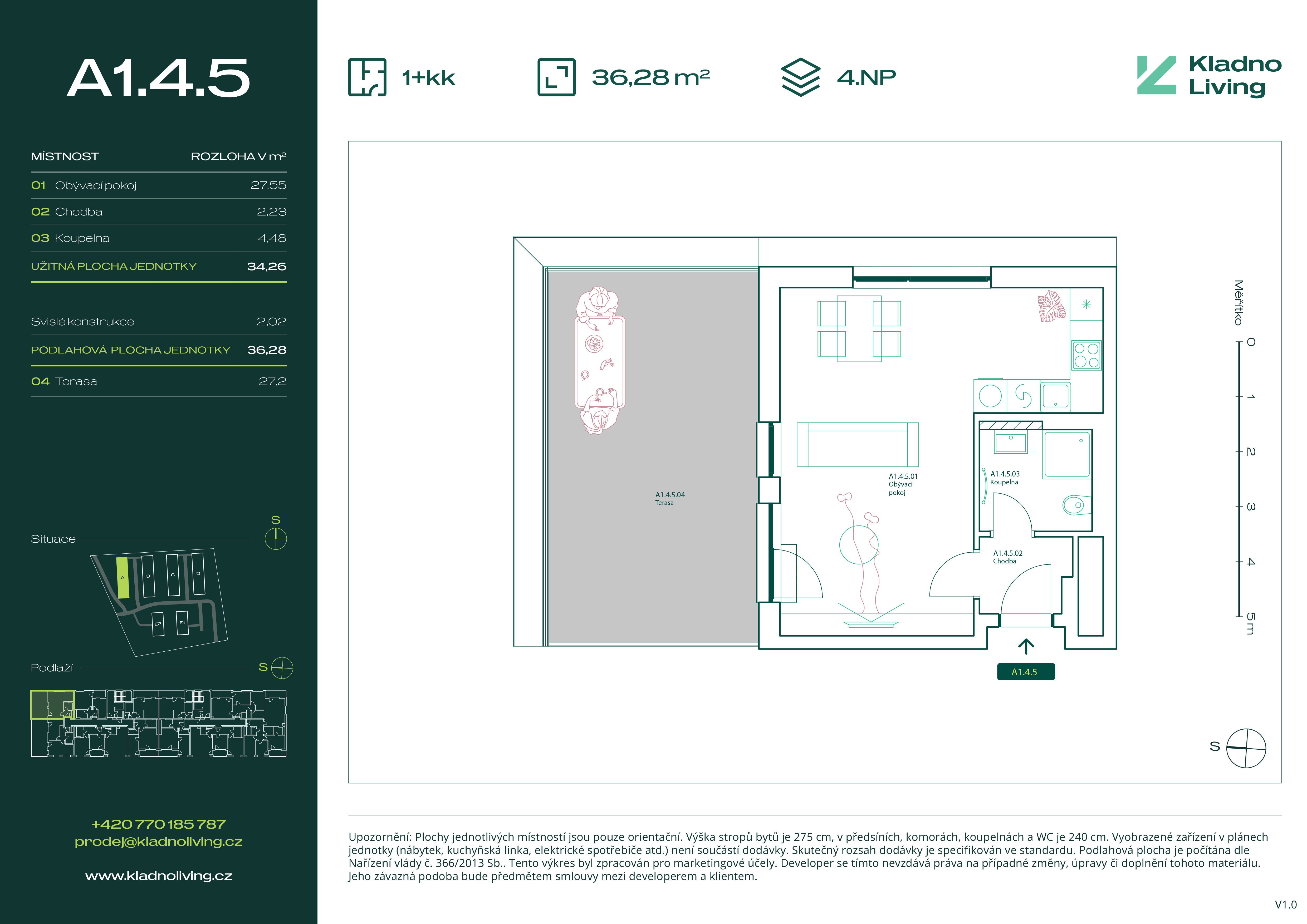 | KL-A128 | 2 + kitchenette | 1st floor | 48 m2 | 52 m2 | No / 5 m2 / No | No | Reserved | Detail |