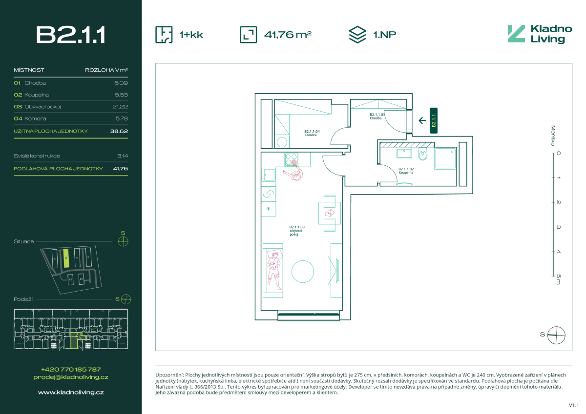| KL-B111 | 2 + kitchenette | ground floor | 48 m2 | 52 m2 | No / No / No | No | 5 450 000 CZK | Detail |