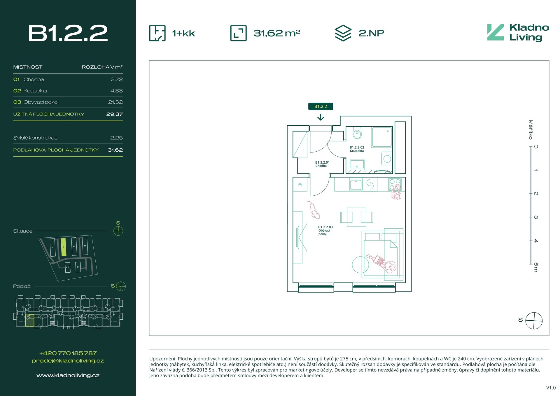 | KL-A122 | 2 + kitchenette | 1st floor | 50 m2 | 54 m2 | No / 4 m2 / No | No | Reserved | Detail |