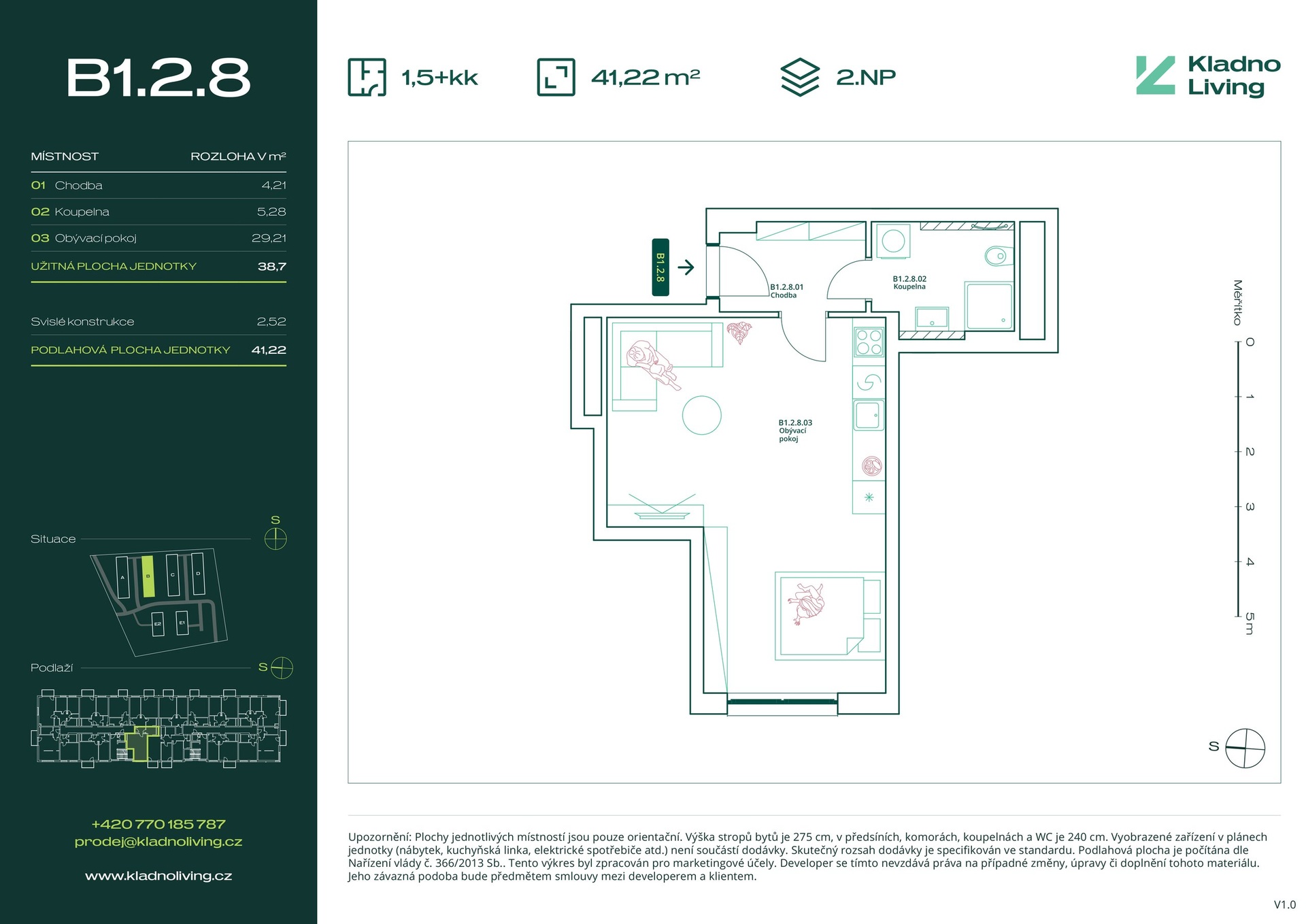 | KL-B128 | 1 + kitchenette | 1st floor | 39 m2 | 41 m2 | No / No / No | No | 4 610 000 CZK | Detail |