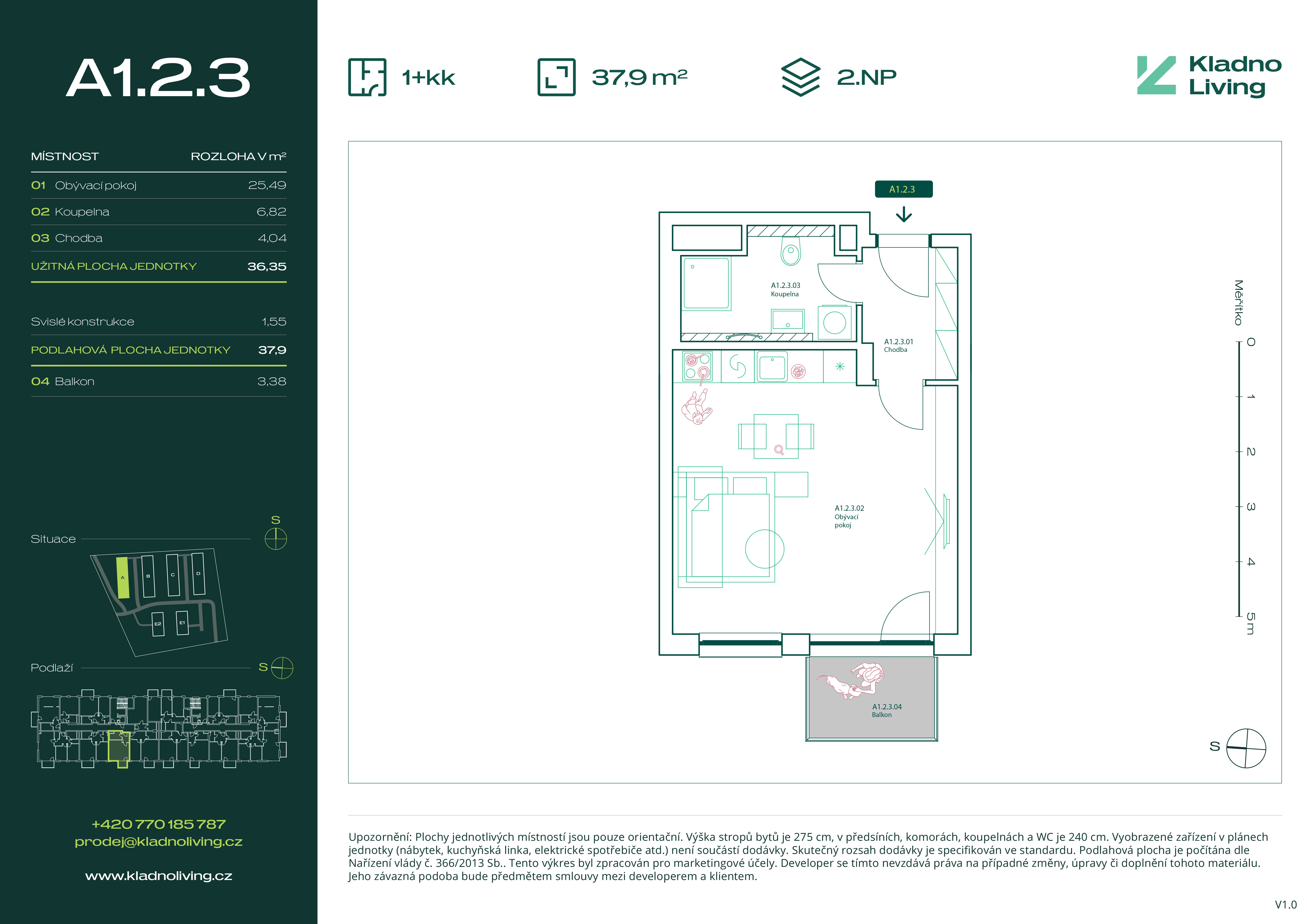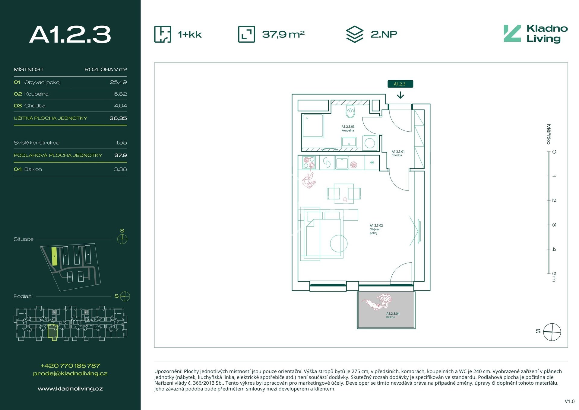 Sale of an apartment 1+kt/B, 37,9 sqm, in the Kladno Living residence, Kladno – Kročehlavy