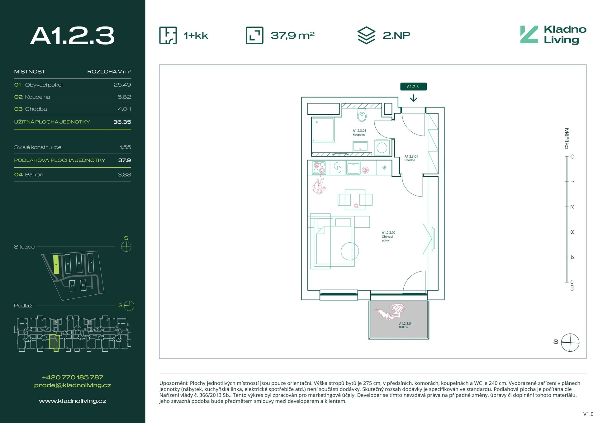 | KL-B126 | 1 + kitchenette | 1st floor | 36 m2 | 38 m2 | No / 3 m2 / No | No | 4 580 000 CZK | Detail |