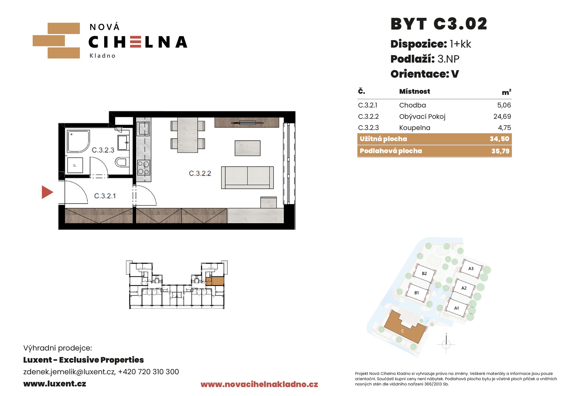 | NC-C201 | 3 + kitchenette | 1st floor | 71 m2 | 75 m2 | No / 13 m2 / No | No | Reserved | Detail |