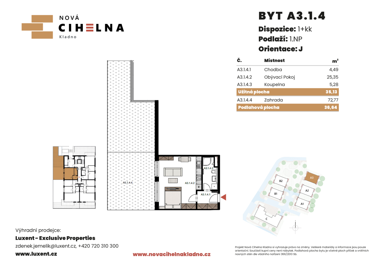 | NC-A213 | 3 + kitchenette | ground floor | 73 m2 | 76 m2 | No / No / No | Yes (98 m2) | Reserved | Detail |
