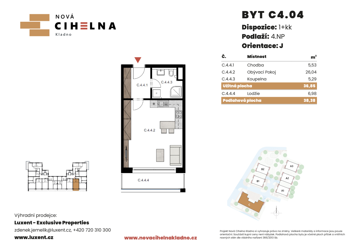 | NC-C204 | 1 + kitchenette | 1st floor | 37 m2 | 38 m2 | No / No / 7 m2 | No | 4 492 610 CZK | Detail |