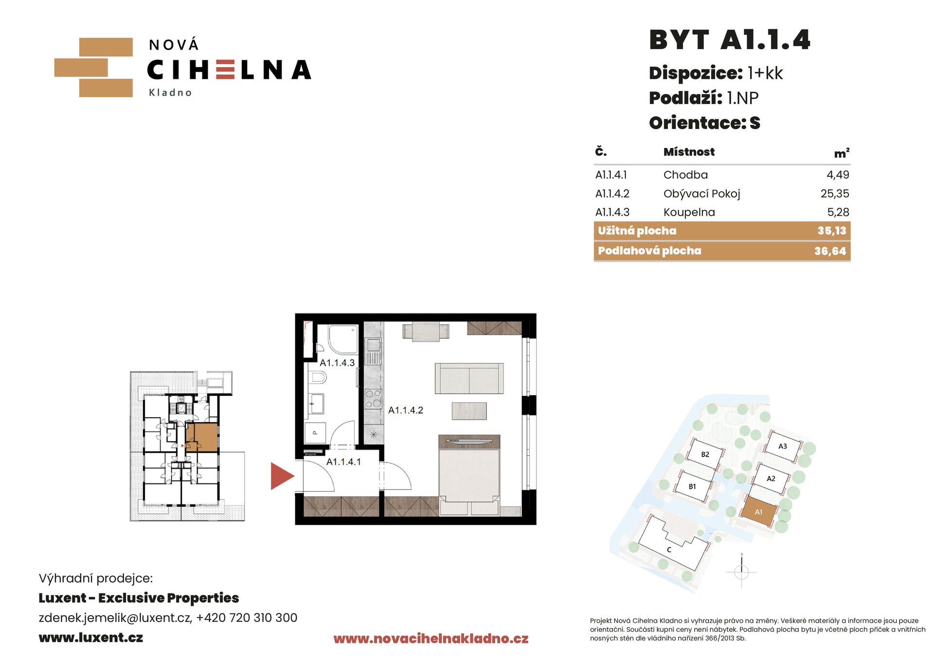 | NC-A114 | 1 + kitchenette | ground floor | 35 m2 | 37 m2 | No / No / No | No | Reserved | Detail |