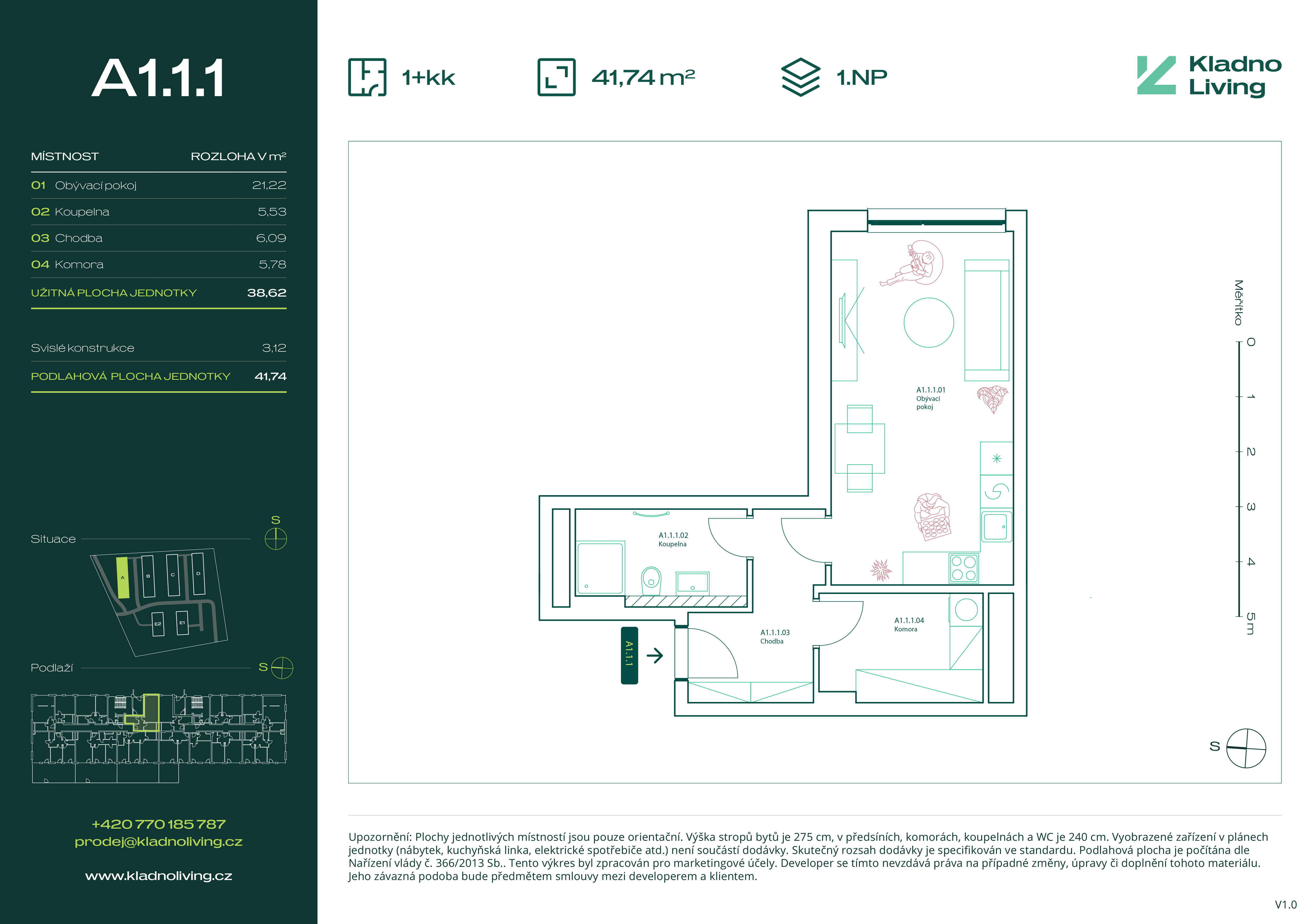 We are offering for sale a modern apartment 1+kt with a floor area of 41,7 sqm in the Kladno Living residential project, which is being built in one of the most attractive locations in the city of Kladno – Kročehlavy. This new development project represents a unique opportunity for those looking for new apartments in Kladno or an investment in real estate with high appreciation potential.