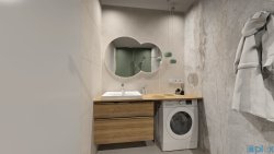 Emphasis is also placed on detail and long-term value. The bathroom features a timeless design utilizing high-quality materials, microcement, and brand-name sanitary fixtures.