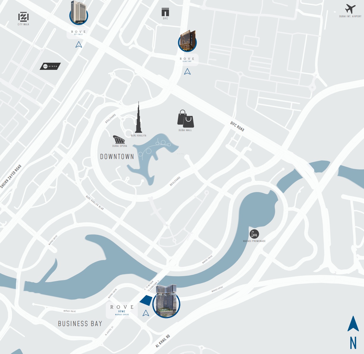 The project's strategic location in close proximity to the city centre allows easy access to Dubai's most sought-after attractions. A mere 10 minute drive will take you to Burj Khalifa and the adjacent fountains, 8 minutes to Dubai Mall and 11 minutes to Dubai Opera. Dubai International Airport is a 15-minute drive away.