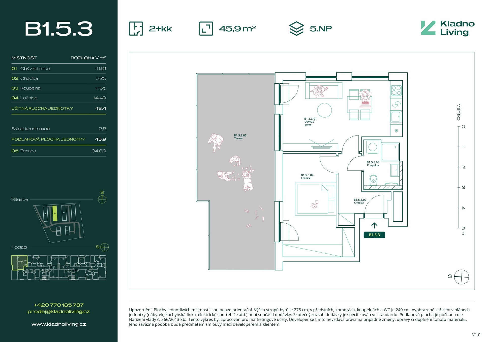 | KL-B123 | 1 + kitchenette | 1st floor | 43 m2 | 45 m2 | No / 6 m2 / No | No | 5 250 000 CZK | Detail |