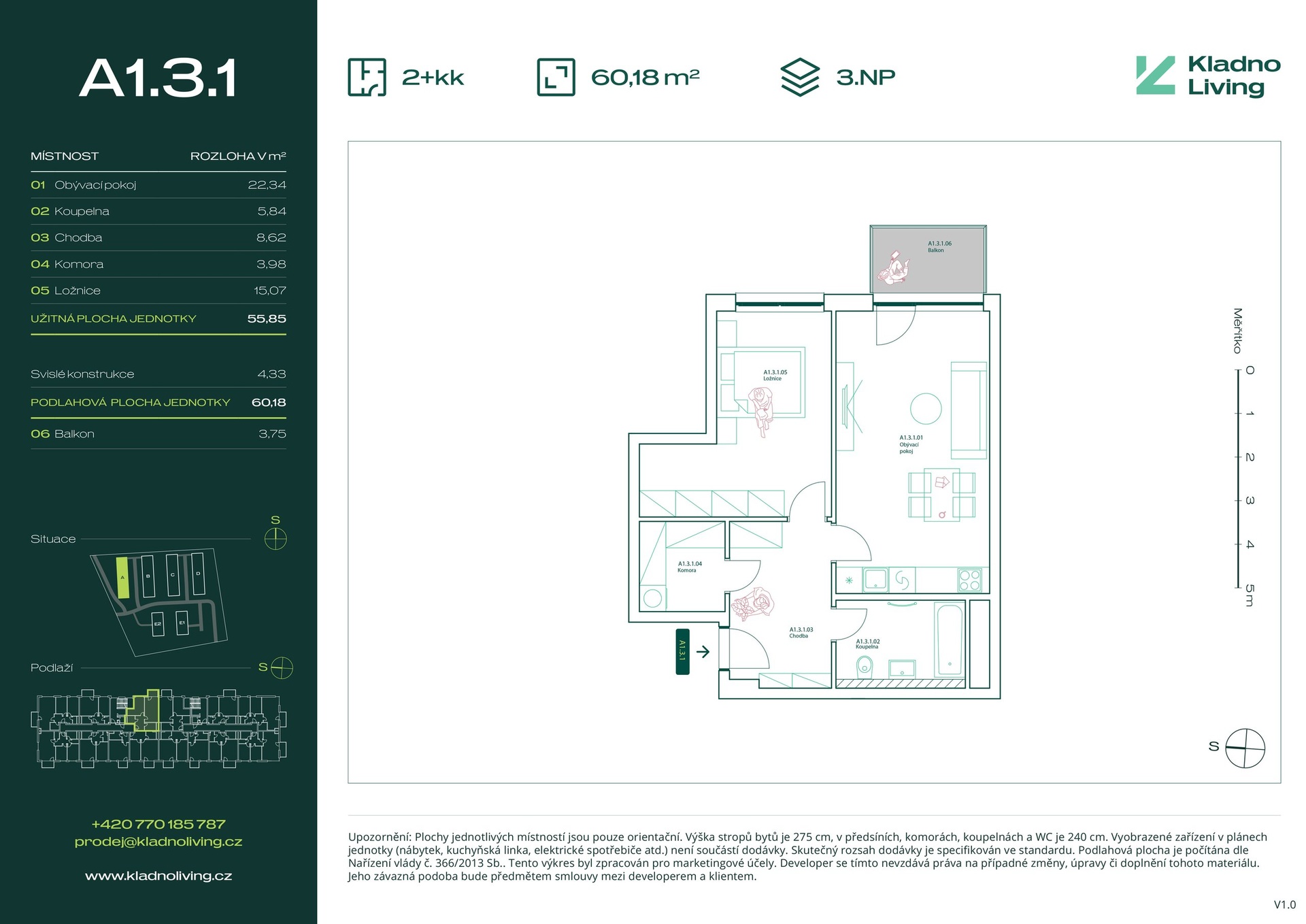 We are offering for sale a modern apartment 2+kt with a floor area of 60,2 sqm and a balcony of 3,8 sqm in the Kladno Living residential project, which is being built in one of the most attractive locations in the city of Kladno – Kročehlavy. This new development project represents a unique opportunity for those looking for new apartments in Kladno or an investment in real estate with high appreciation potential.