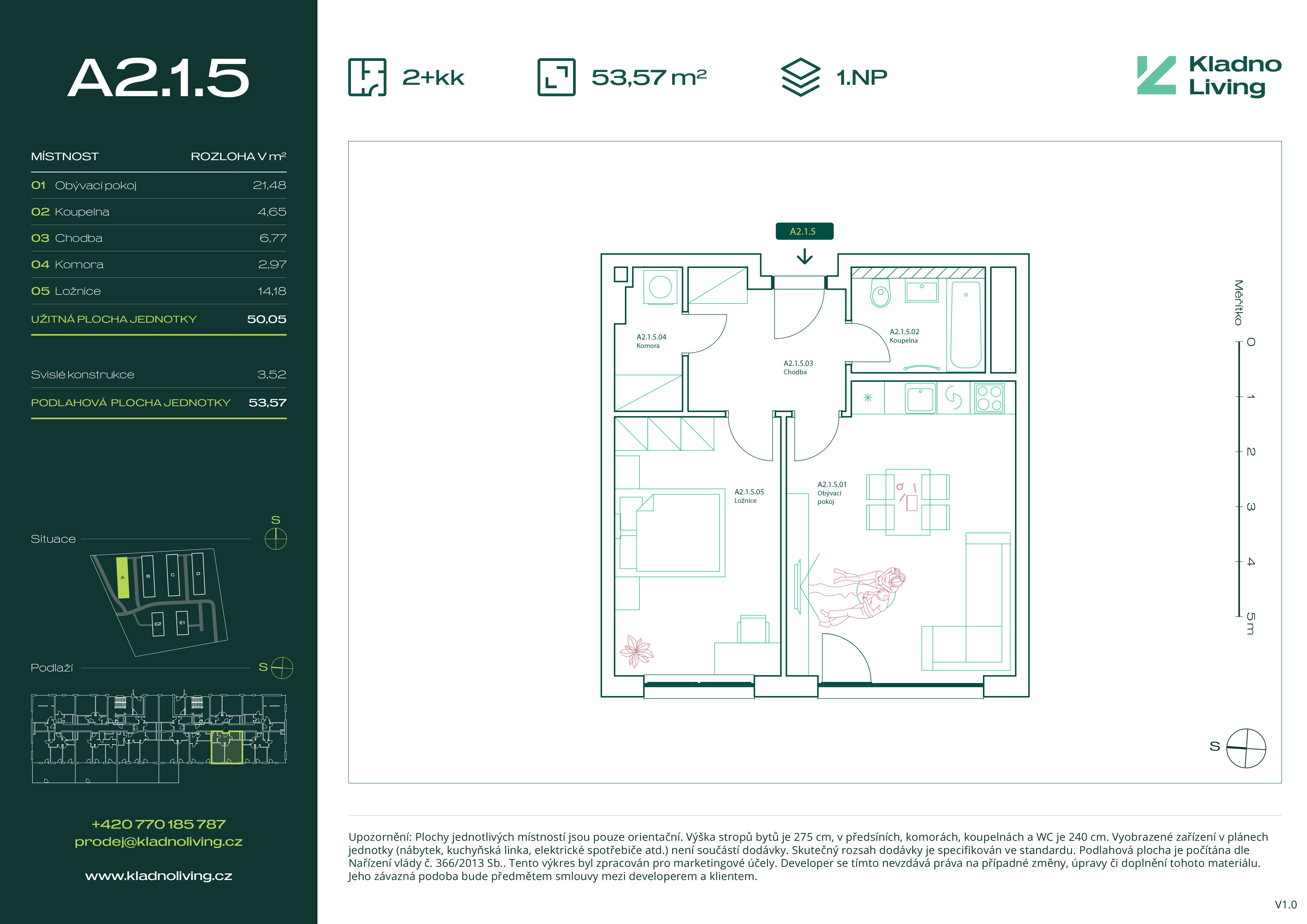 | KL-A128 | 2 + kitchenette | 1st floor | 48 m2 | 52 m2 | No / 5 m2 / No | No | Reserved | Detail |