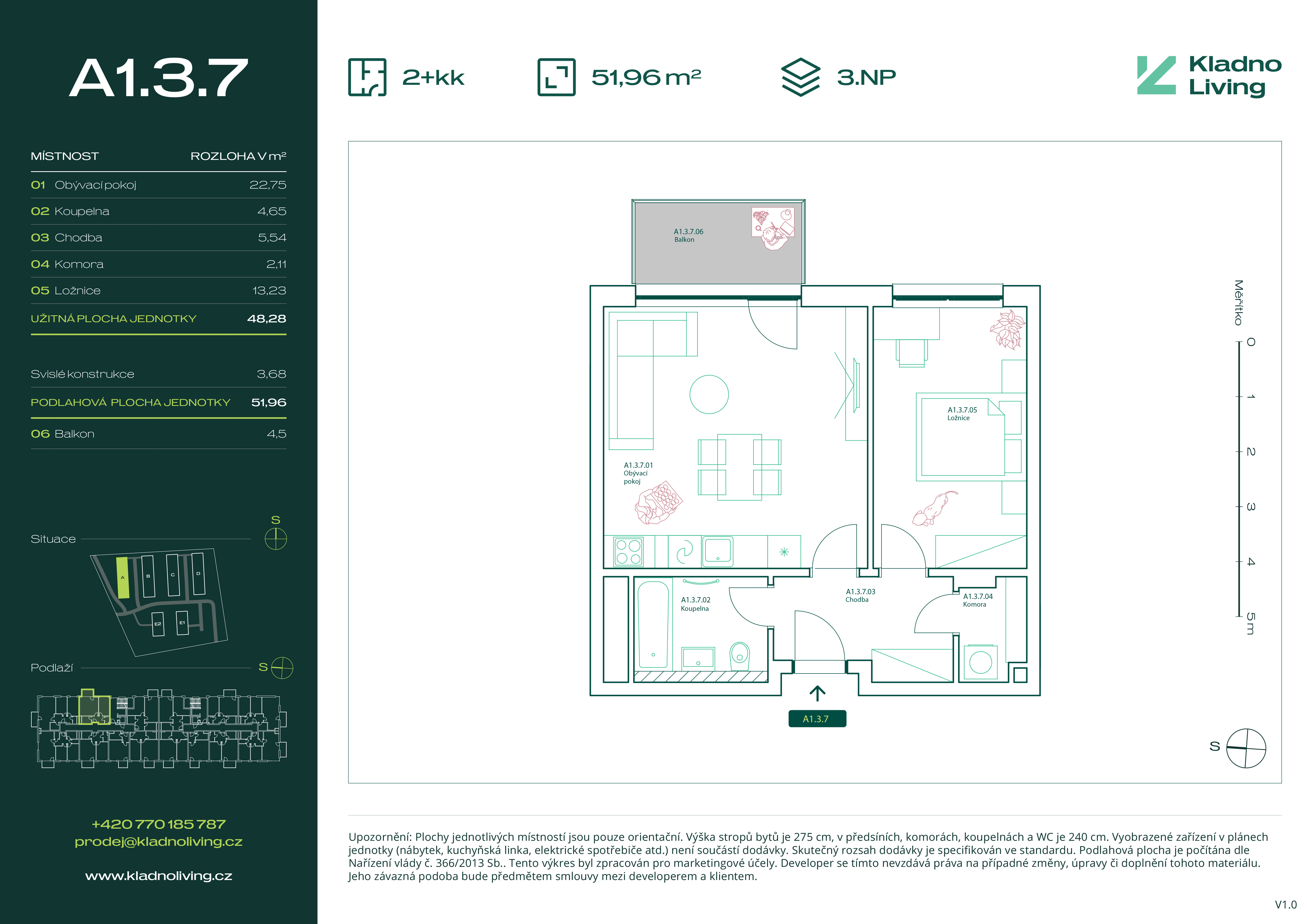 | KL-A128 | 2 + kitchenette | 1st floor | 48 m2 | 52 m2 | No / 5 m2 / No | No | Reserved | Detail |