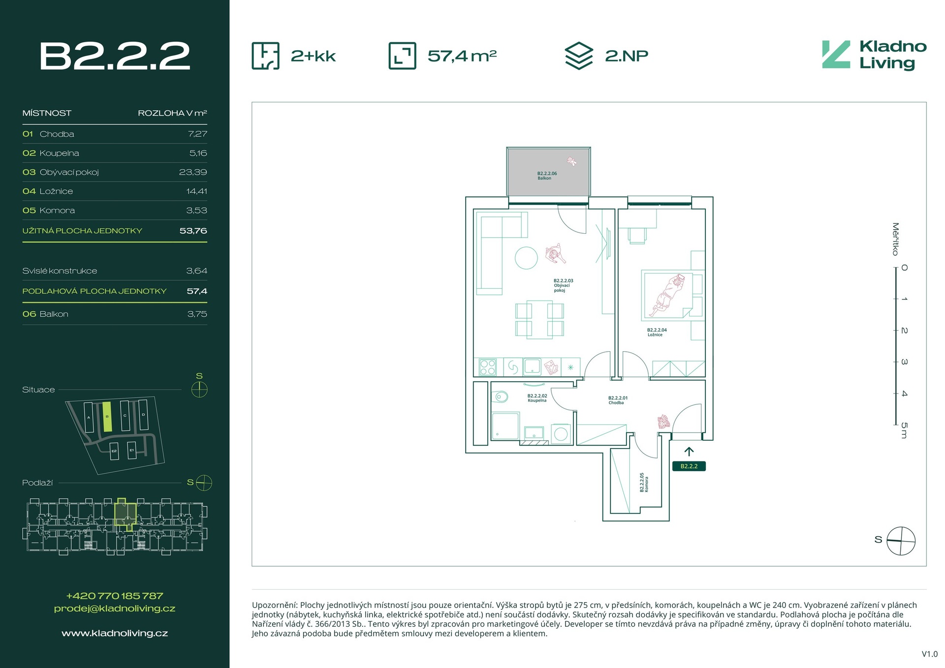 | KL-B222 | 2 + kitchenette | 1st floor | 54 m2 | 57 m2 | No / 4 m2 / No | No | 6 220 000 CZK | Detail |
