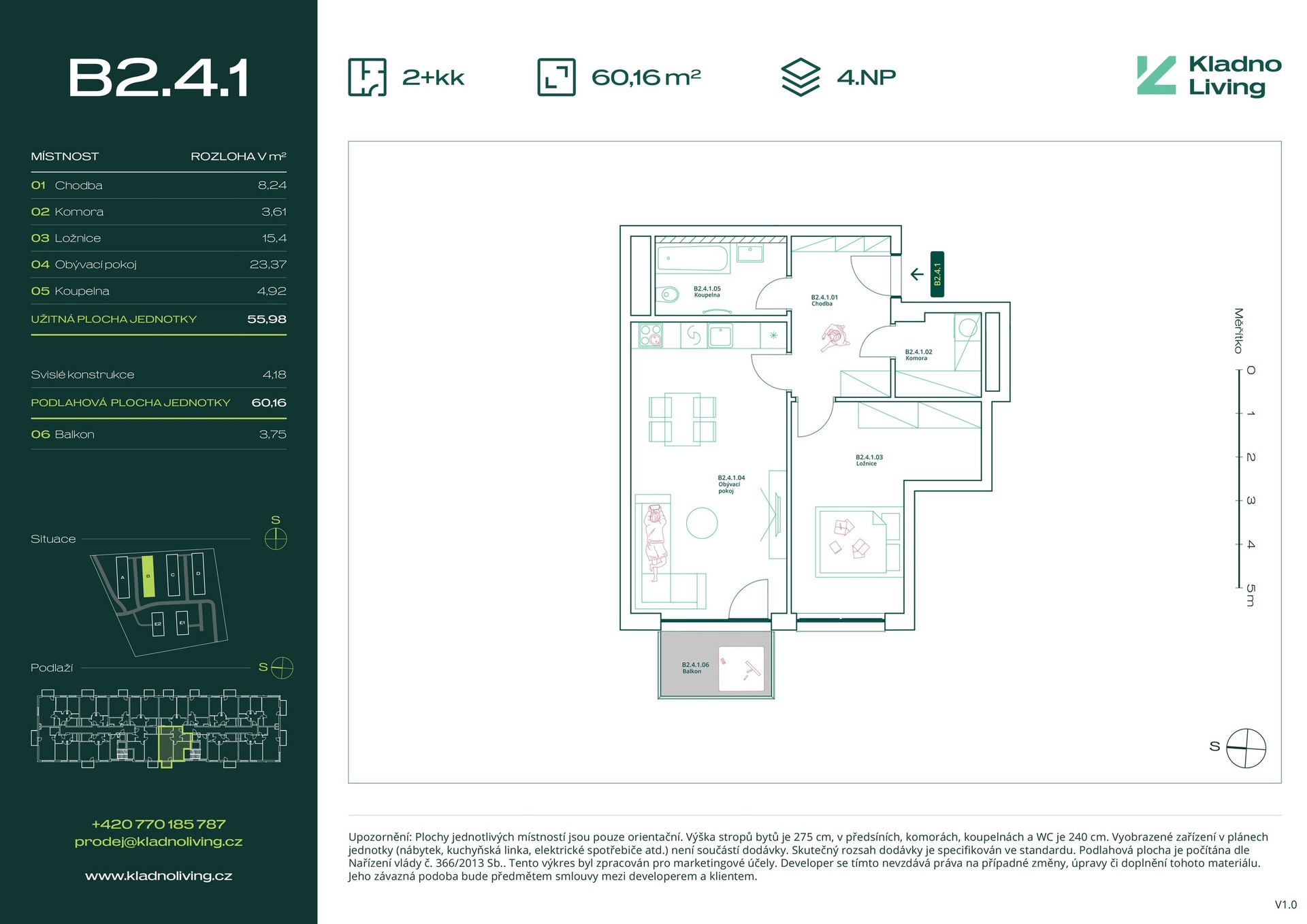 | KL-B241 | 2 + kitchenette | 3rd floor | 56 m2 | 60 m2 | No / 4 m2 / No | No | 6 790 000 CZK | Detail |