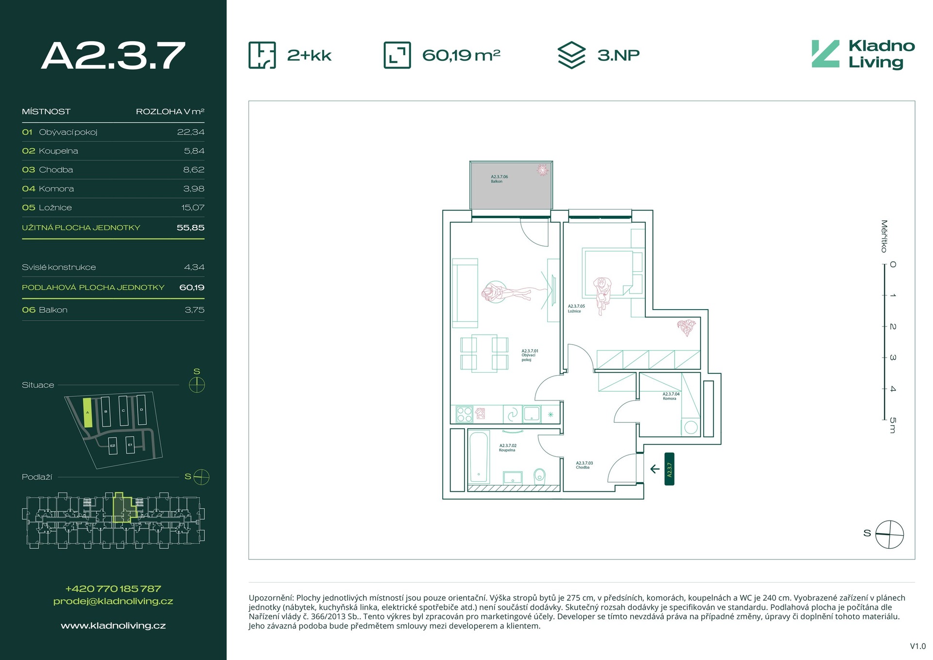 | KL-A125 | 3 + kitchenette | 1st floor | 71 m2 | 76 m2 | No / 5 m2 / No | No | 7 680 000 CZK | Detail |