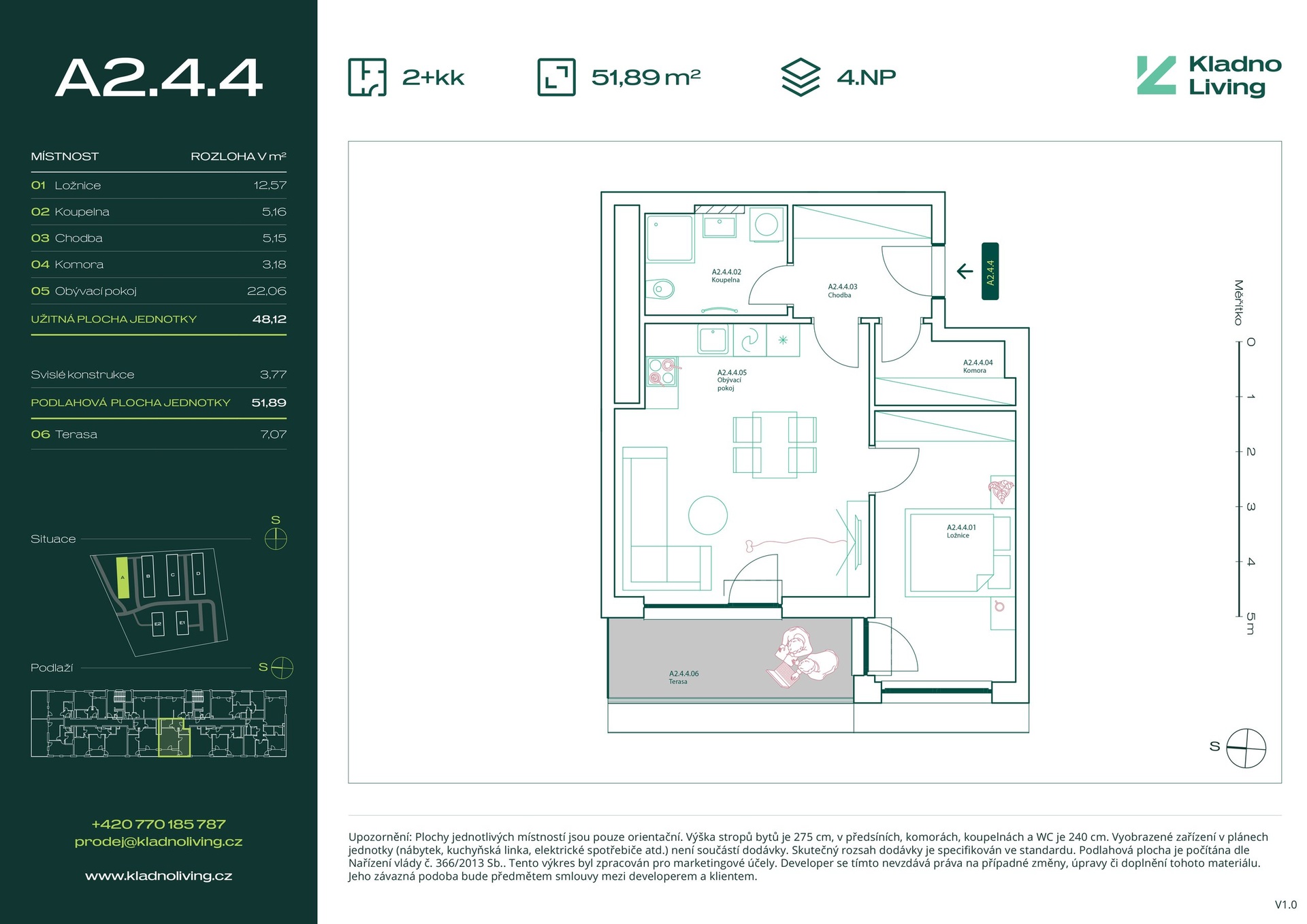 We are offering for sale a modern apartment 2+kt with a floor area of 51,9 sqm and a terrace of 7 sqm in the Kladno Living residential project, which is being built in one of the most attractive locations in the city of Kladno – Kročehlavy. This new development project represents a unique opportunity for those looking for new apartments in Kladno or an investment in real estate with high appreciation potential.