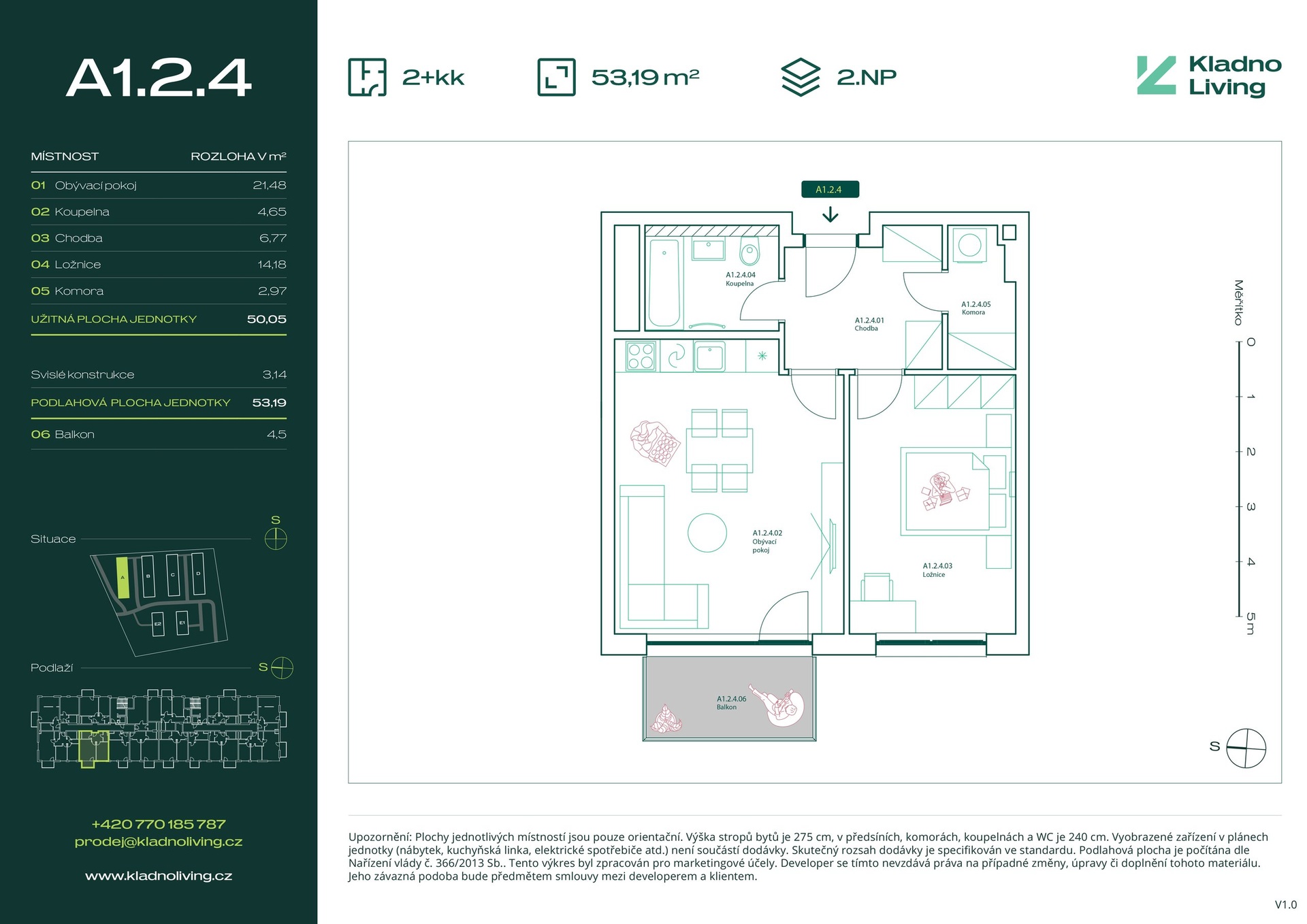 | KL-A122 | 2 + kitchenette | 1st floor | 50 m2 | 54 m2 | No / 4 m2 / No | No | Reserved | Detail |