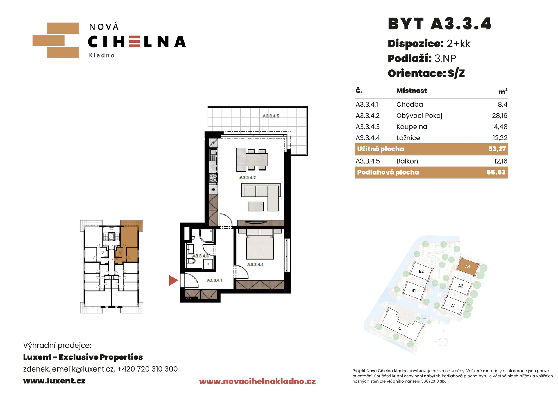 | NC-A131 | 2 + kitchenette | 2nd floor | 53 m2 | 55 m2 | No / 12 m2 / No | No | Reserved | Detail |