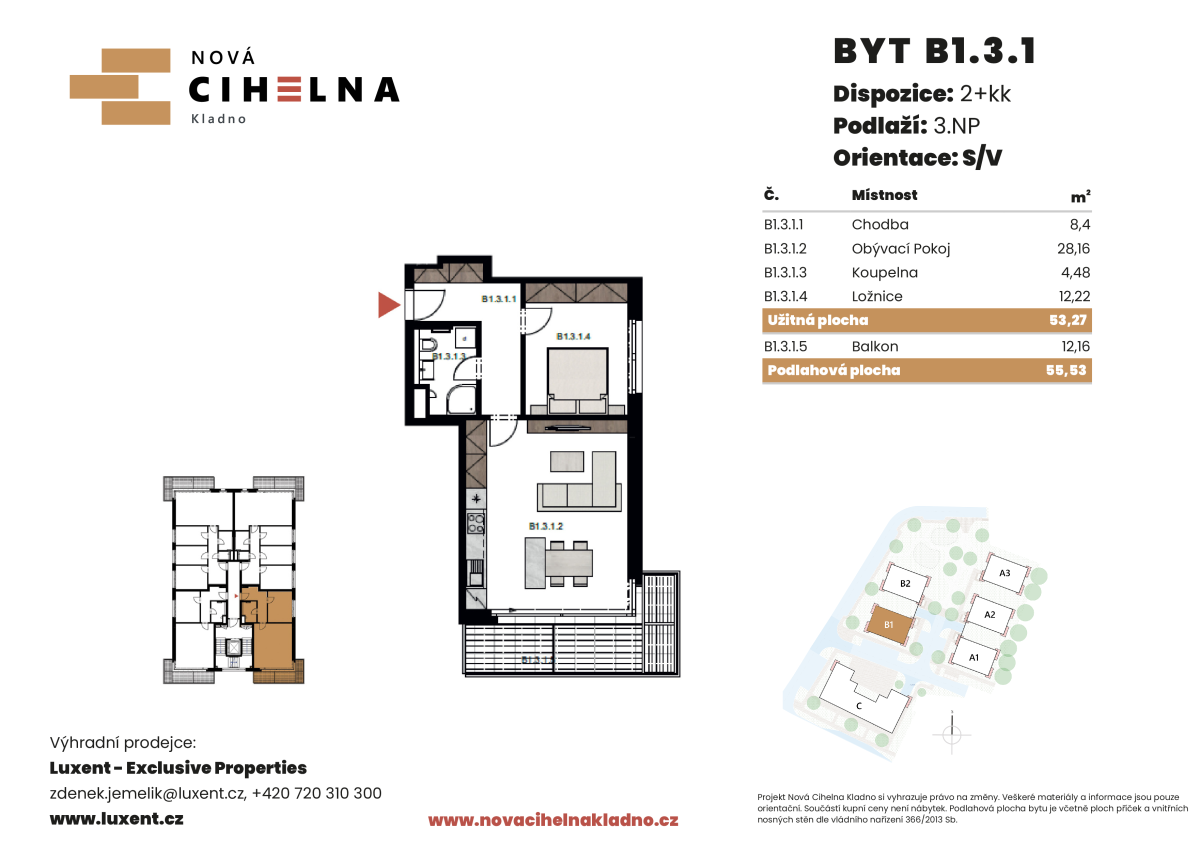 | NC-B134 | 2 + kitchenette | 2nd floor | 53 m2 | 55 m2 | No / 12 m2 / No | No | Reserved | Detail |
