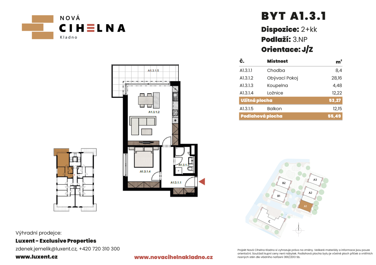 | NC-A131 | 2 + kitchenette | 2nd floor | 53 m2 | 55 m2 | No / 12 m2 / No | No | Reserved | Detail |