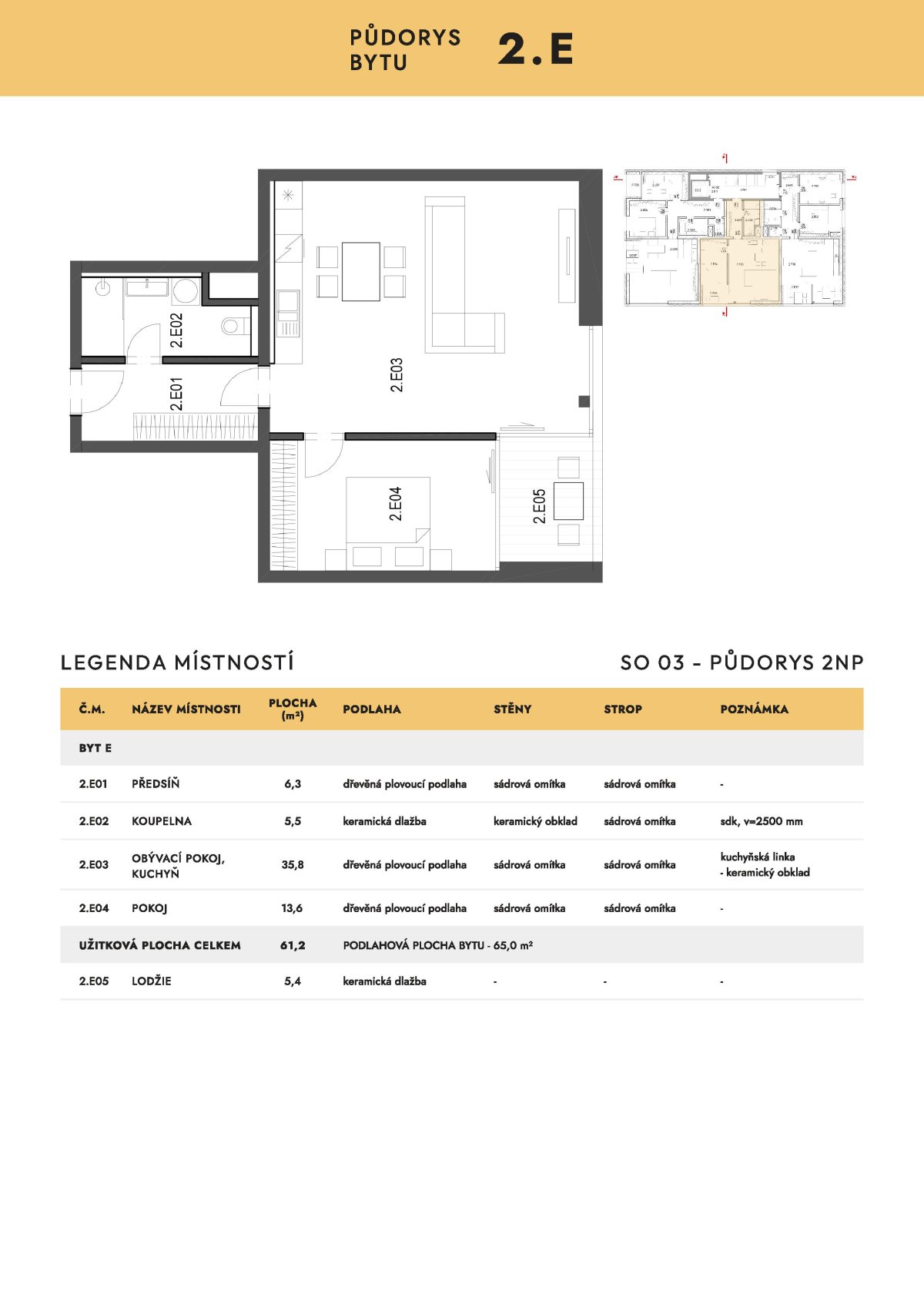 | NB-A2E | 2 + kitchenette | 1st floor | 61 m2 | 65 m2 | No / No / 5 m2 | No | 8 108 000 CZK | Detail |