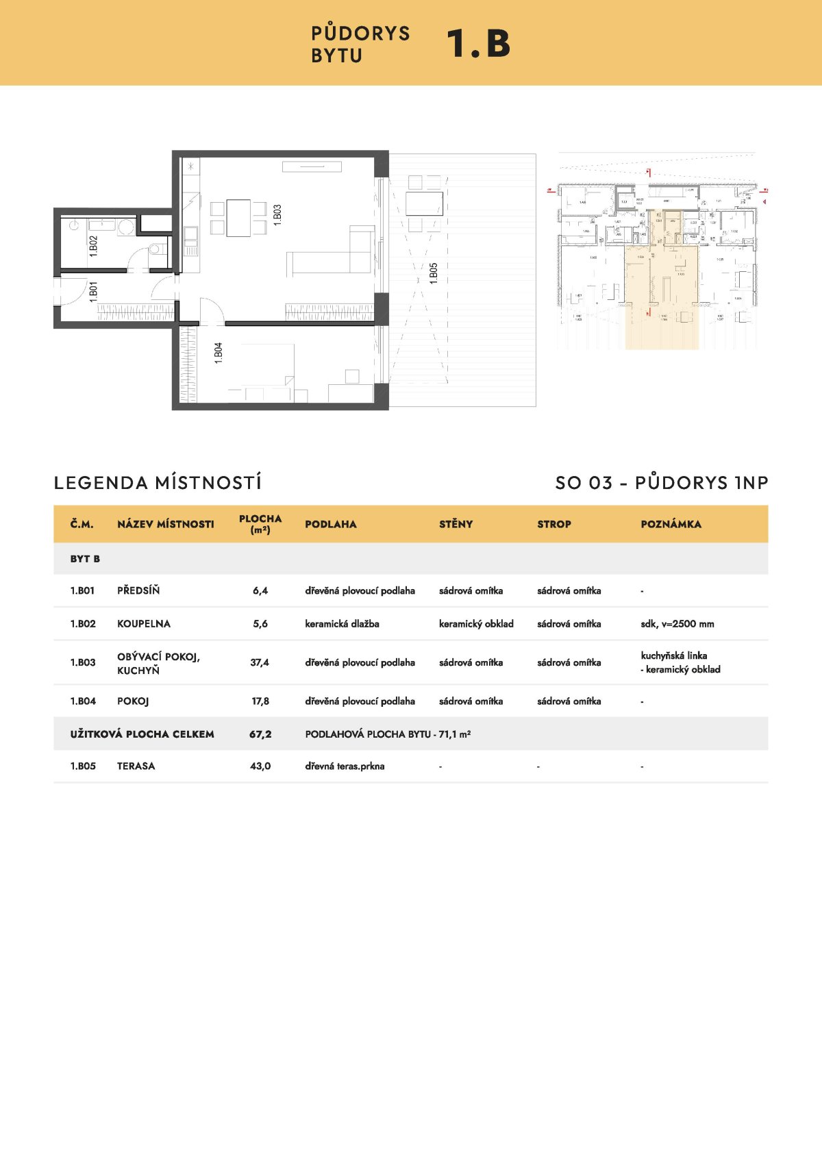 | NB-A1B | 2 + kitchenette | ground floor | 67 m2 | 71 m2 | 43 m2 / No / No | No | Reserved | Detail |