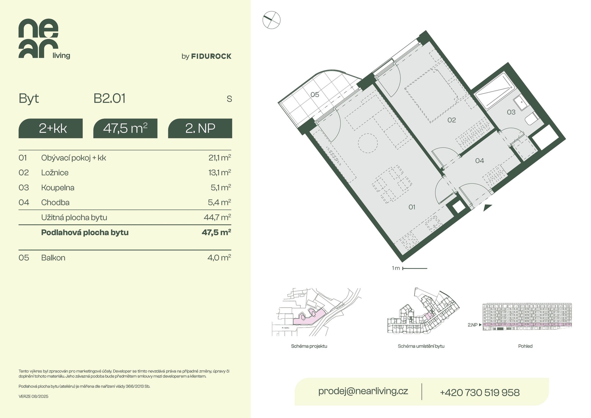 We are offering for sale a 2+kt apartment with a floor area of 47.5 sqm and a 4 sqm balcony in the NEAR living development project in Prague 8, located on the border between Palmovka and Karlín.