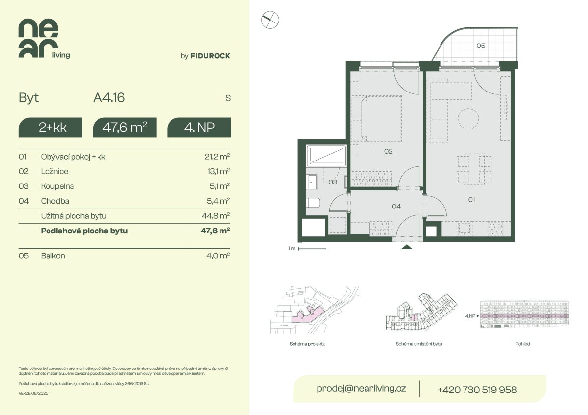 We offer for sale a 2+kt apartment with a floor area of 47,6 sqm and a 4 sqm balcony in the NEAR living development project in Prague 8, located on the border between Palmovka and Karlín.