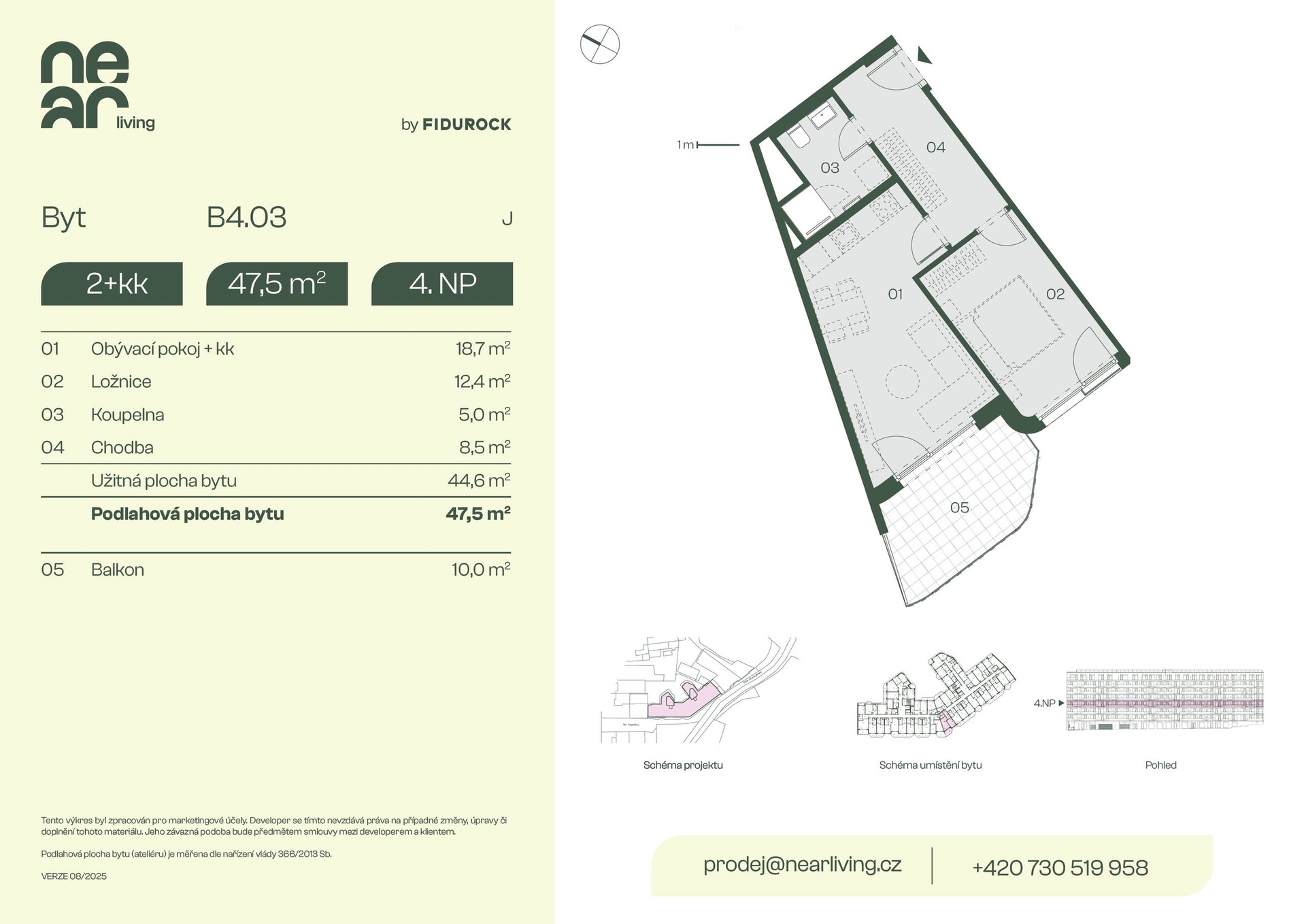 We offer for sale a 2+kt apartment with a floor area of 47.5 sqm and a 10 sqm balcony in the NEAR living development project in Prague 8, located on the border between Palmovka and Karlín.