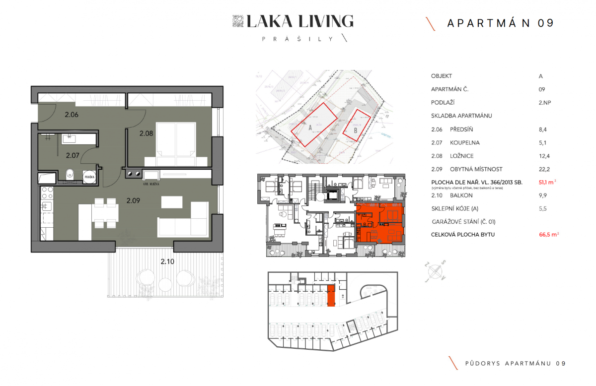 | LL-A09 | 2 + kitchenette | 1st floor | 66 m2 | 51 m2 | No / 10 m2 / No | No | Sold | Detail |