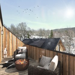 The chamber hot residence LAKA LIVING is being built in the heart of the Sumava National Park, in the picturesque village of Prášily. The property is located on the site of a former border company building and comprises a total of 20 luxury apartments with a layout of 1 + kk, 2 + kk and 3 + kk and unit sizes from 24.7 m² to 92.7 m² in two apartment buildings. The architecture of the project is fully in line with the local development and the location of the national park. Bright rooms with magnificent views of the mountain landscape are accentuated by the quality natural materials throughout the property.