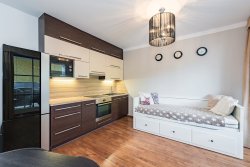 The apartment is located in the popular mountain resort of Špindlerův Mlýn in the Krkonoše National Park. The area is known for its ski slopes, hiking trails and beautiful mountain views. There are many hotels, cottages, restaurants and other services in the vicinity.