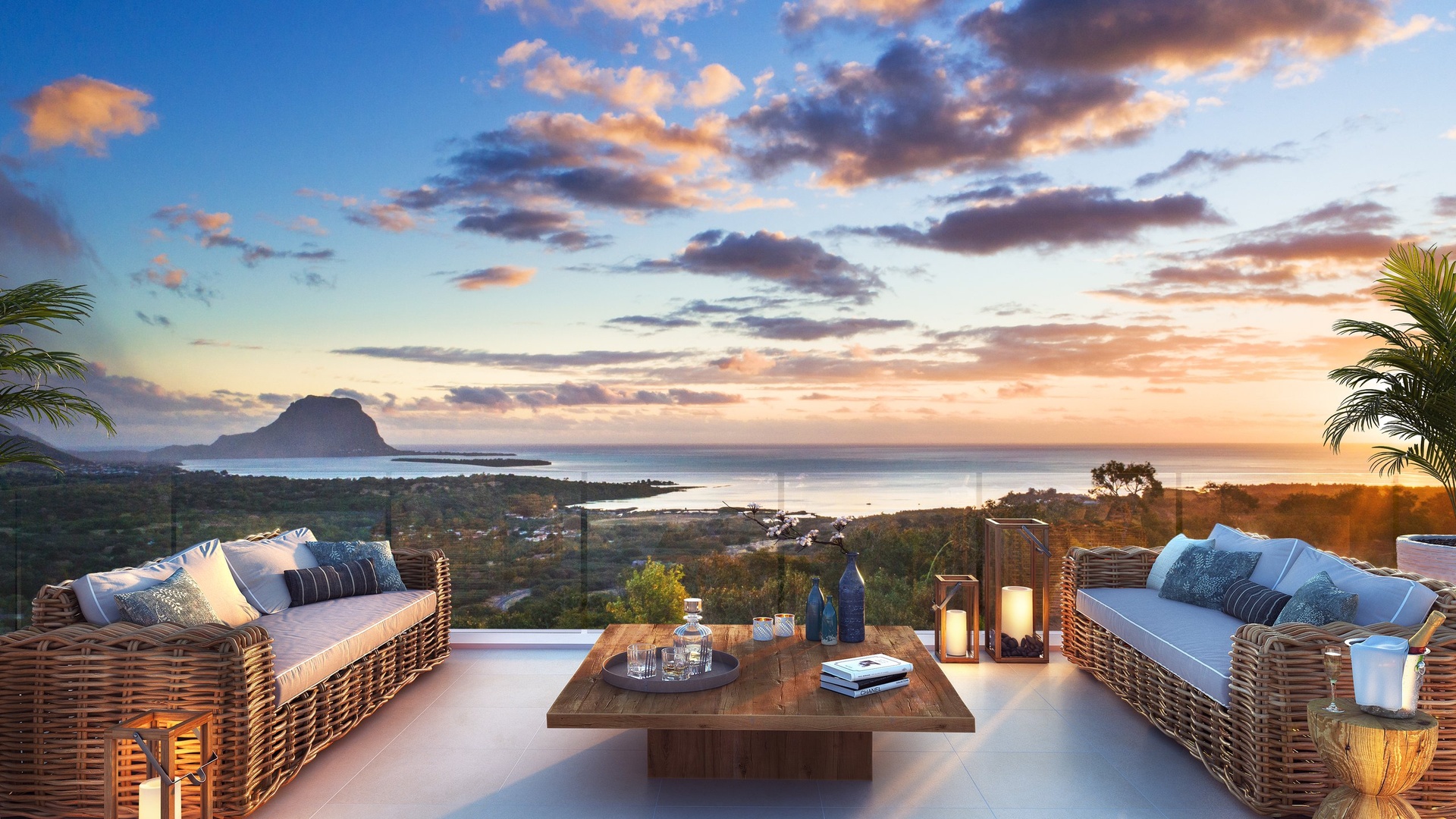 We are offering for sale a luxury 2 bedroom penthouse in the emerging luxury project Montana Oceano in the southwest of the island of Mauritius. The residence is set amidst lush tropical nature at 113 metres above sea level and offers breathtaking 180 degree views of the mountains, savannah and Indian Ocean. Sunsets, periodic rainbows, starry skies, spectacular panoramas of the sea and mountains can be enjoyed from your private terrace every day.