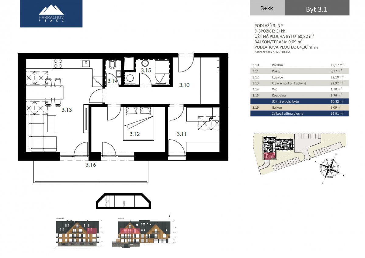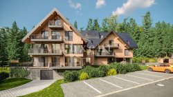 Harrachov Peaks is a luxury project built from quality natural materials with a wellness area with sauna and jacuzzi and a fully equipped fitness room. It presents only 16 modern apartments and thus offers an intimate atmosphere in the house for their owners. Its concept will satisfy those interested in second homes in the Giant Mountains as well as investors with the intention of securing their finances or practicing profitable short-term rentals. The offer also includes apartment management including rentals. The HARRACHOV PEAKS project offers a high standard of furnishings - oak floors, wooden terraces, large format tiles in bathrooms and corridors and more. Heating is provided by heat pumps and is distributed by underfloor heating system. The apartment has heat recovery. The energy class is very economical B.