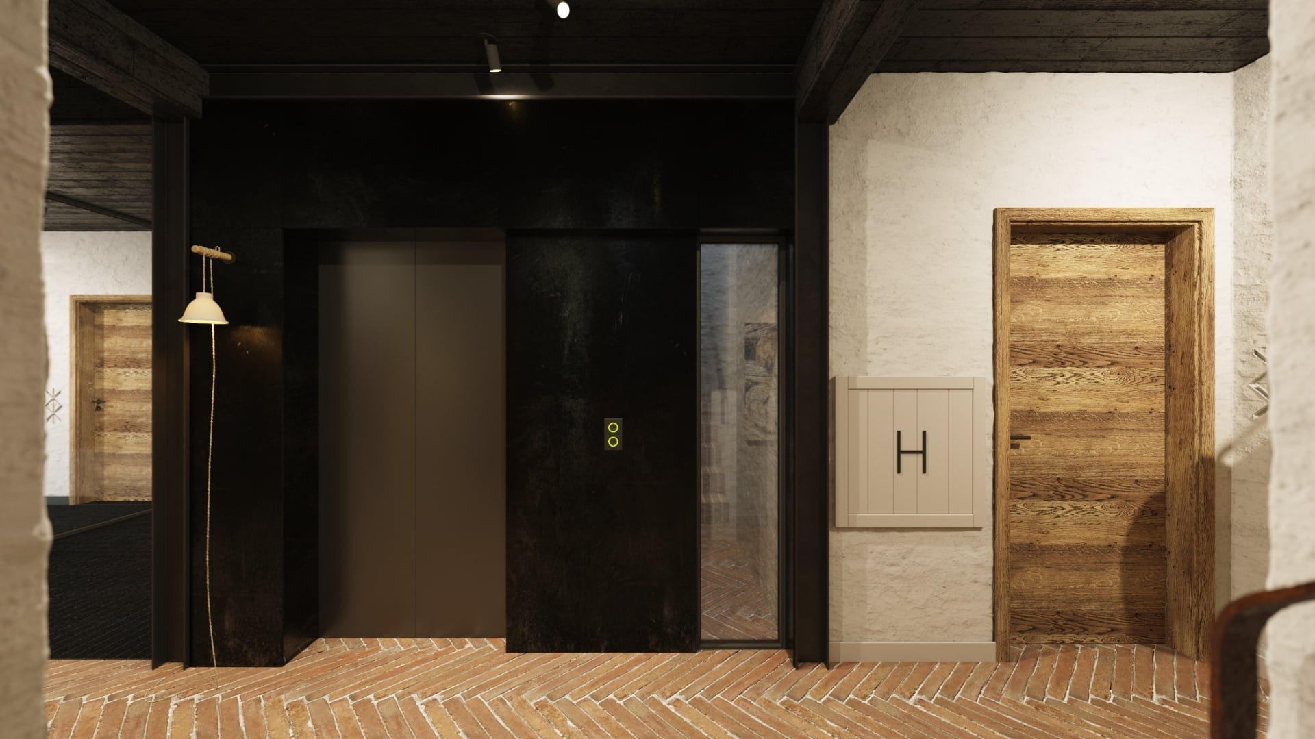 The new residence was created by the architects of Morix studio and is intended for lovers of privacy, original architecture and distinctive style. The apartments have well thought out layouts and novel interior design in a modern rustic mountain style with balconies or terraces and a front garden on the ground floor. Parking is covered at the house and the apartments have ample storage for the whole family's bikes, SNBs and skis in the cellars and in the communal ski room with lockable boxes. The house has an elevator, high standard common area amenities, is heated by heat pumps and the apartments include external blinds and a SMART control system as standard.