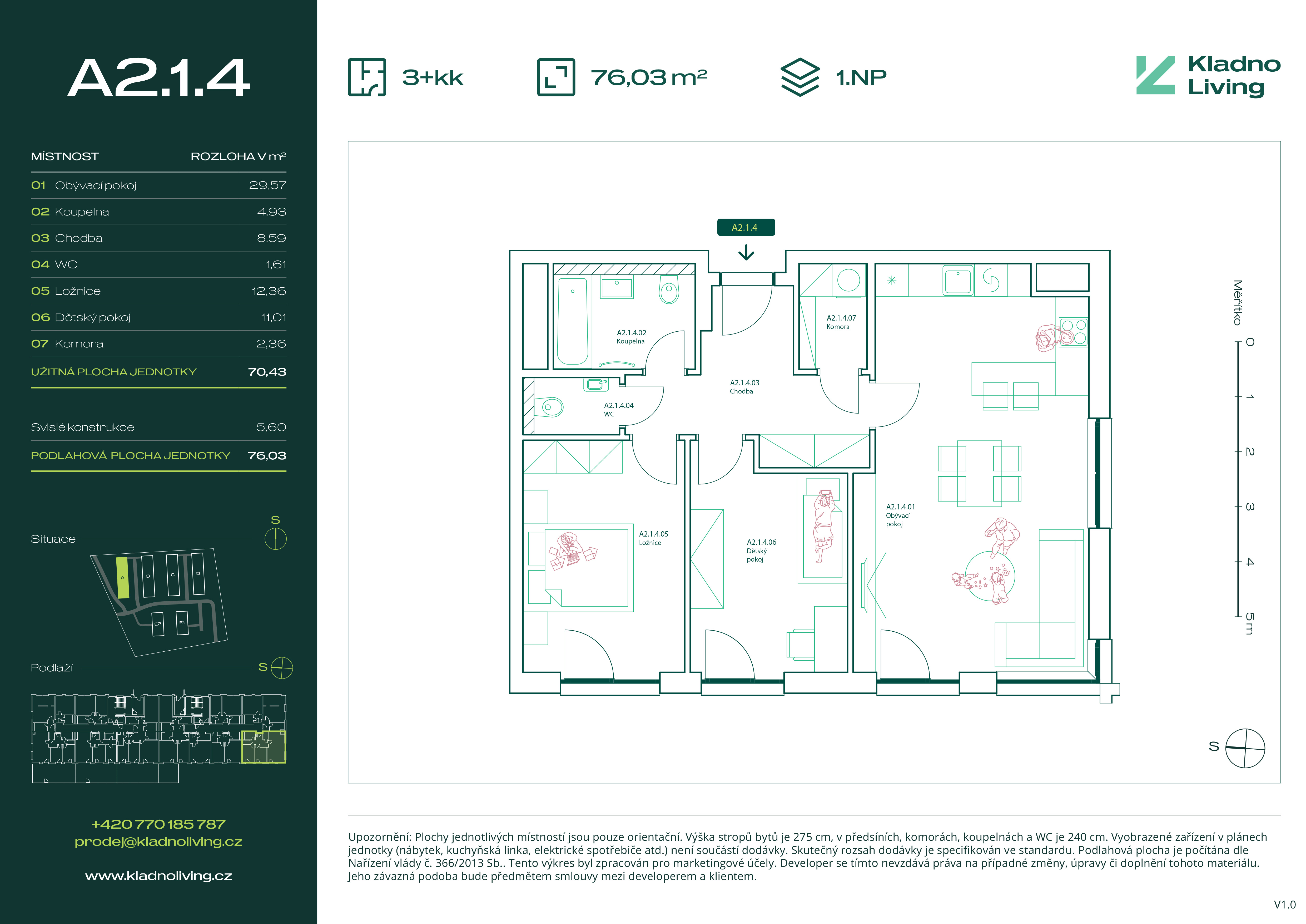 | KL-A125 | 3 + kitchenette | 1st floor | 71 m2 | 76 m2 | No / 5 m2 / No | No | 7 680 000 CZK | Detail |