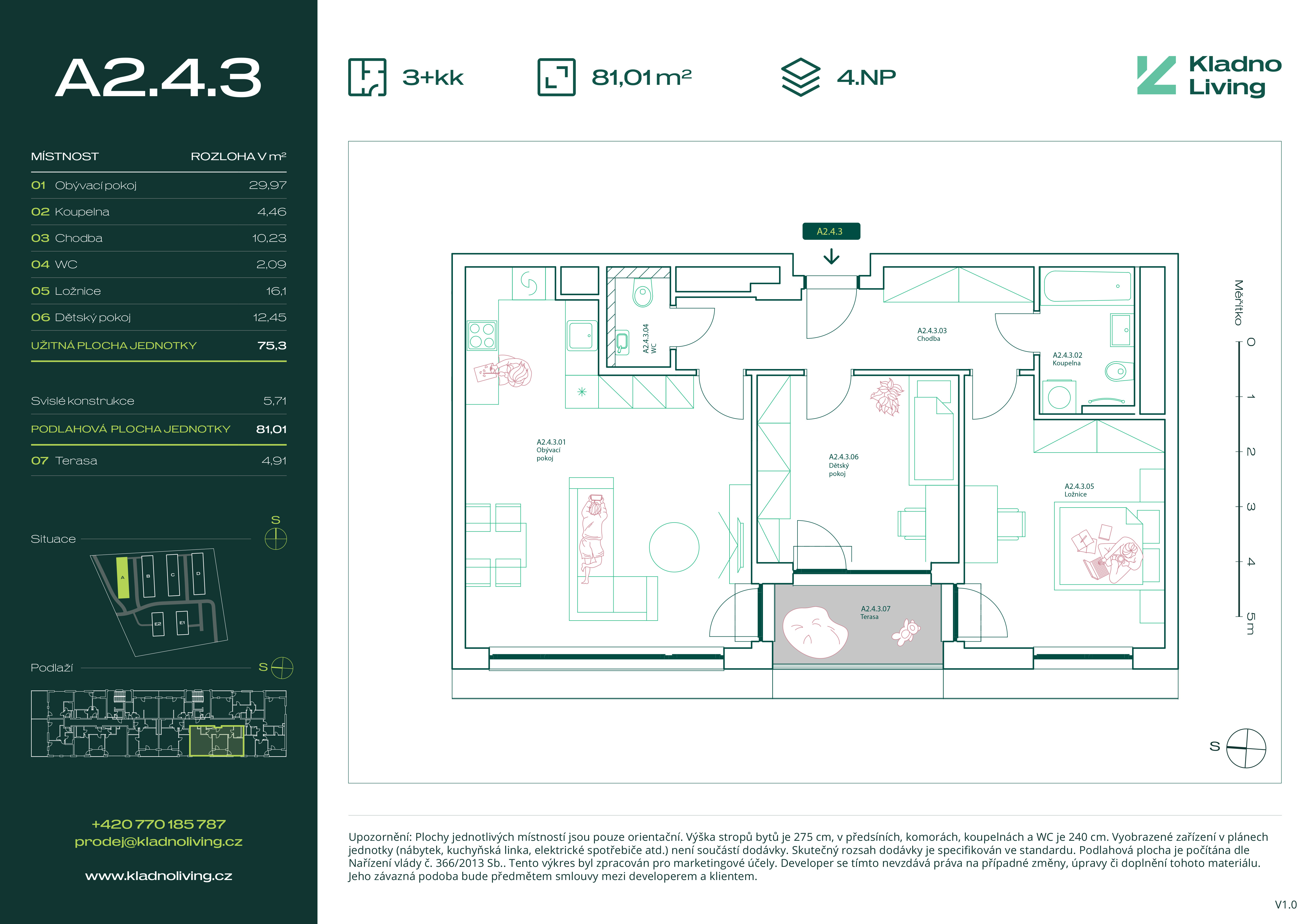 Sale of an apartment 3+kt/T, 81 sqm, in the Kladno Living residence, Kladno – Kročehlavy